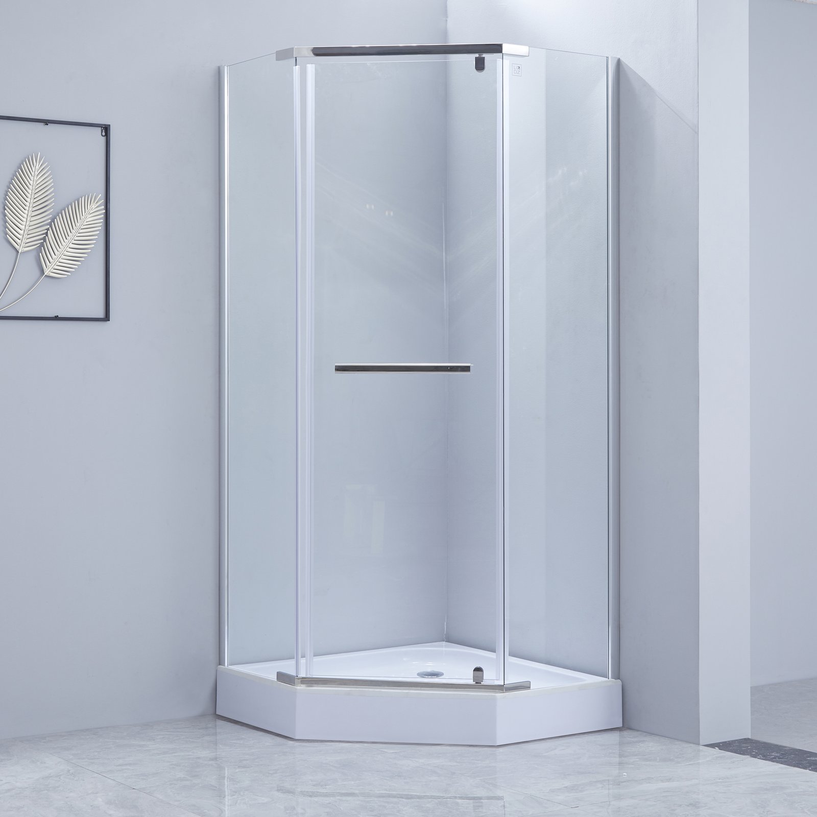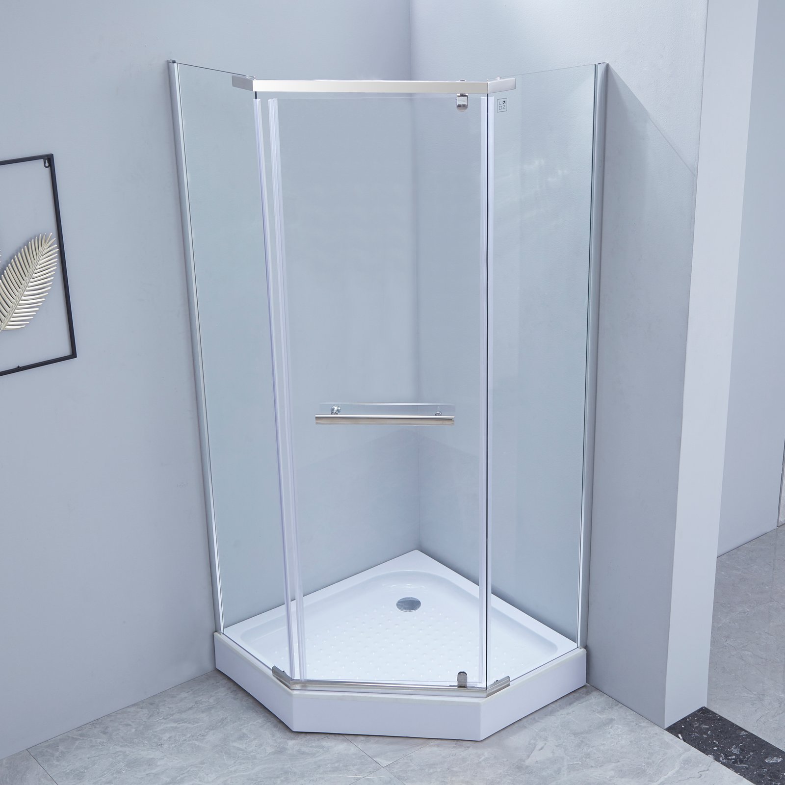 Душова кабіна Dozorca SC90x90.CRM.LOW.TR, п'ятикутна, низький пріддон, скло прозоре 6 мм, на завісах Lidz