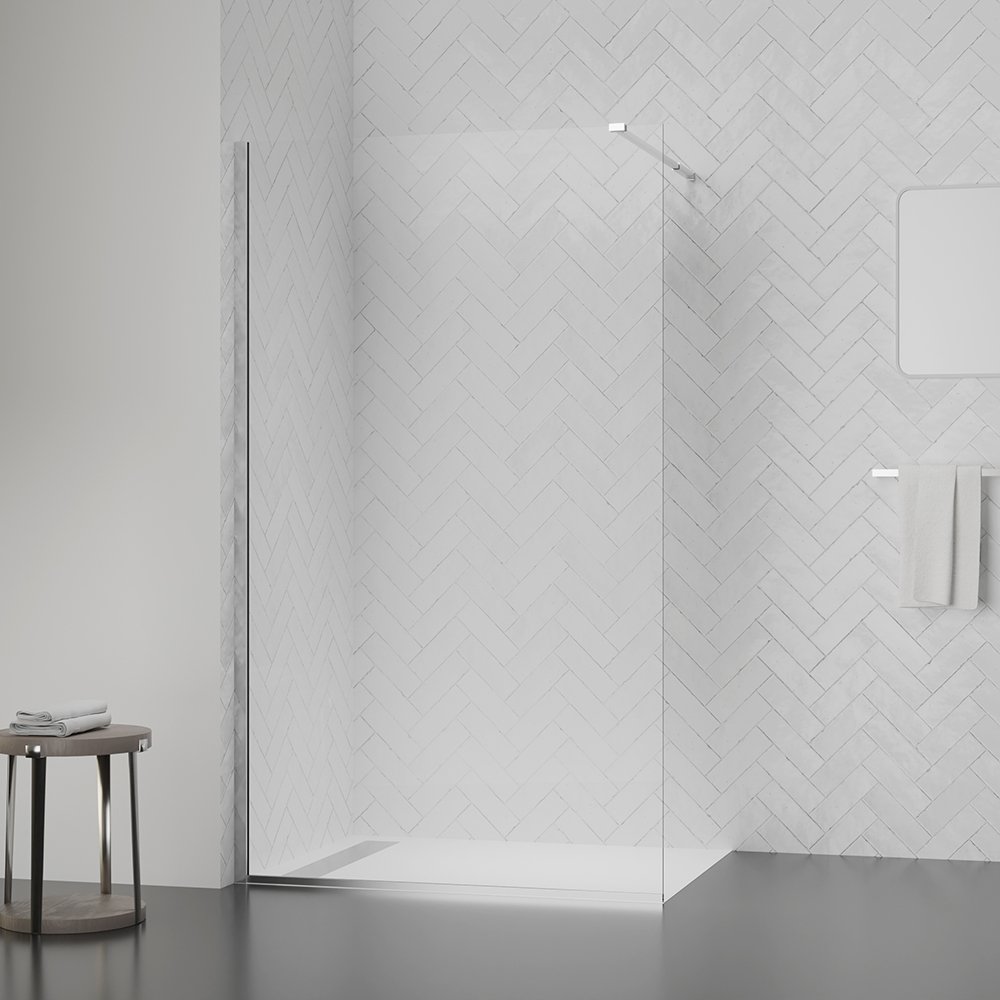 Душова перегородка Qtap Walk-In Standard CRM2011.C8 виготовлена ??з високоміцного скла та алюмінієвого профілю з хромованим покриттям. Товщина скла складає 8 мм. Орієнтація виробу універсальна. Конструкція має регульовану ширину і легко монтується. Така перегородка дозволить розмежувати зони санвузла та вбереже кімнату від зайвої вологи. Виріб може монтуватись як на підлогу, так і на піддон.