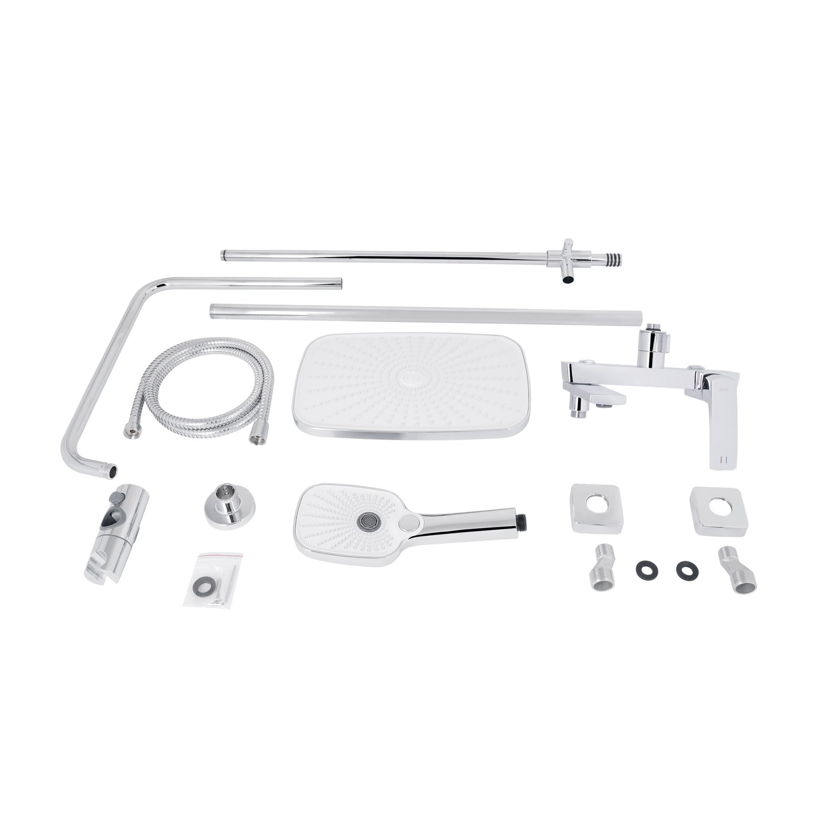 Душова система Qtap Tern QTTER1112CRM47592 — універсальне рішення для комфортних водних процедур, розраховане на трьох споживачів: верхній душ, ручний душ та вилив . Корпус виготовлений із міцних матеріалів з хромованим покриттям, що забезпечує довговічність і захист від корозії. Верхній душ із широкою лійкою створює рівномірний потік води, а ручний душ із кількома режимами струменя робить використання більш зручним. Поворотний вилив і вбудований перемикач дозволяють легко змінювати режим подачі води. Настінний монтаж економить простір, а сучасний дизайн гармонійно вписується в інтер’єр ванної кімнати.