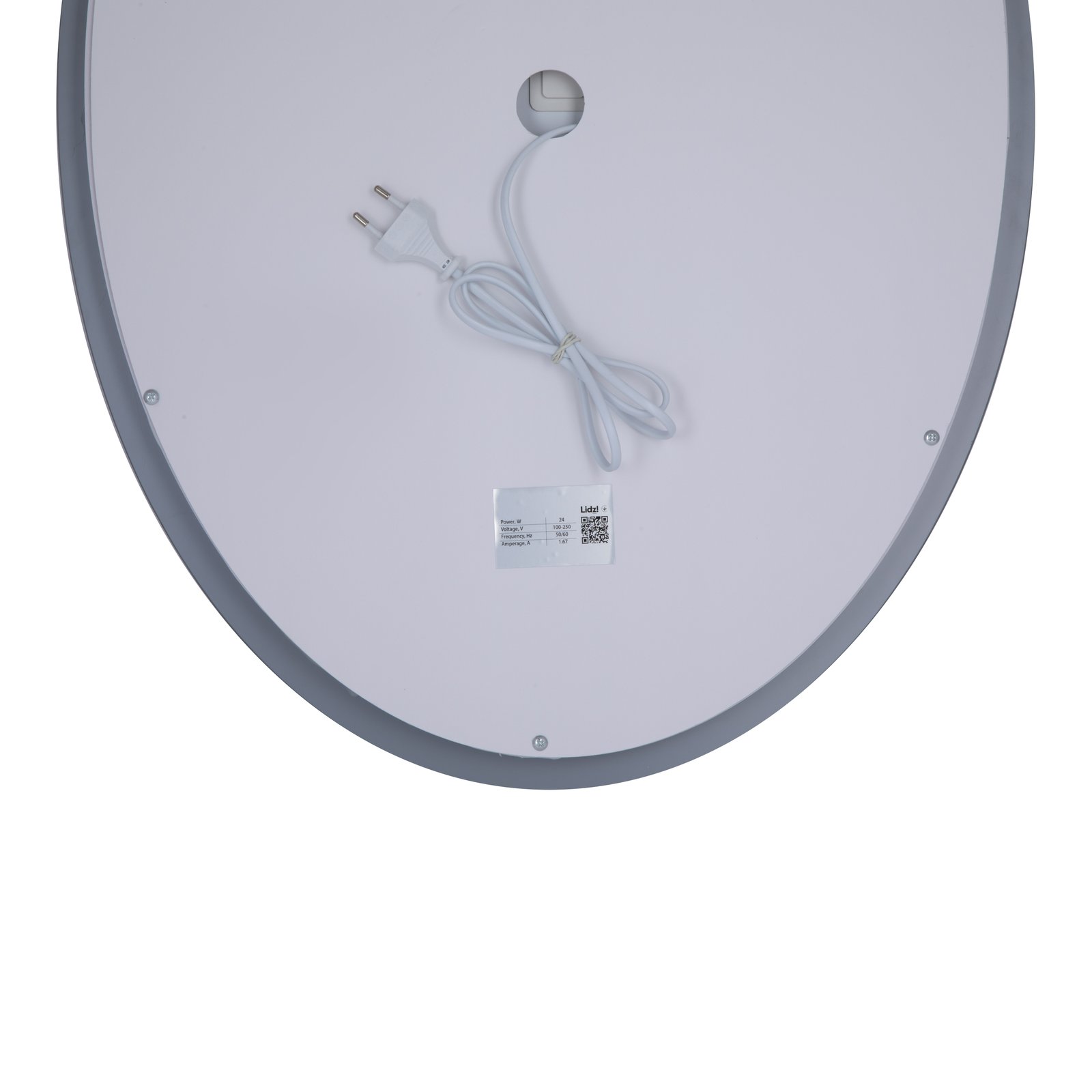 Дзеркало має високий рівень безпеки: світлодіоди працюють під напругою 12 В. Виріб комплектується дротом довжиною 1100 мм з вилкою, що спрощує процес підключення. Овальна форма без гострих кутів та міцне настінне кріплення гарантують безпечну експлуатацію впродовж років.
