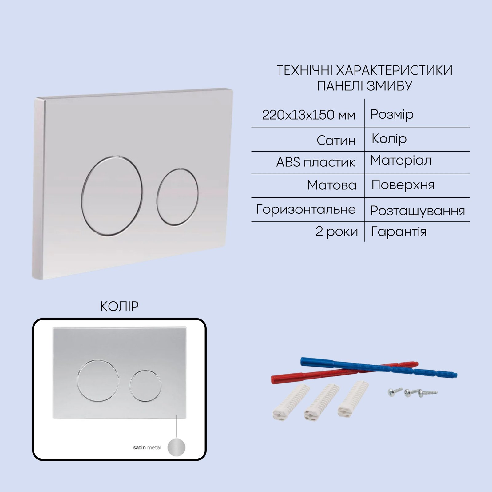Інсталяція, панель змиву, звукоізоляційна прокладка, унітаз, сидіння, кріплення.