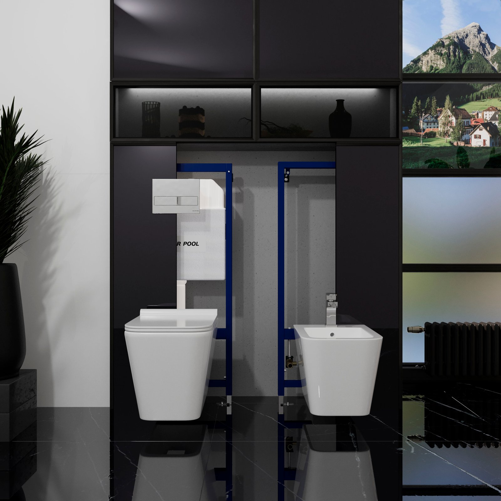 Dune bidet – це інсталяційна система для підвісного біде, що поєднує надійність, функціональність і продуманий дизайн для сучасних ванних кімнат. Рама виготовлена з високоякісної сталі з порошковим фарбуванням, що забезпечує стійкість до корозії та довговічність конструкції. Система має монтажну висоту 1123 мм, що дозволяє адаптувати її до різних умов установки. У комплект входять кріплення до стіни для забезпечення стабільності та надійності конструкції, підключення для гарячої та холодної води, а також з’єднувальне коліно діаметром 50 мм для ефективного водовідведення. Інсталяція Dune bidet забезпечує простий та швидкий монтаж, а її конструкція дозволяє приховати всі комунікації, створюючи чистий та естетично привабливий вигляд у ванній кімнаті. Це ідеальне рішення для поєднання практичності та сучасного стилю в інтер'єрі.