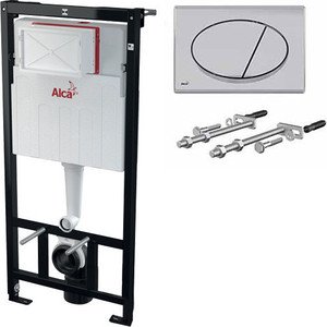 Для монтажа к несущей стене или в гипсокартонную конструкцию Для установки подвесного унитаза с интервалом крепления 180 мм или 230 мм Для пола с толщиной стяжки 0-200 мм Для подвесных унитазов Технические параметры Рекомендуемый диапазон давления воды: 0,3 – 0,5 MPa Рабочий диапазон давления воды: 0,05 – 0,8 MPa Гигиенический резерв:3 л Малый смыв: 2,5 – 3,5 л Объем воды в бачке: 9 л Подвод воды к задней стенке бачка или сверху бачка осуществляется с помощью монтажных отверстий: G1/2 " Стандартные настройки малого смыва: 3 л Стандартные настройки большого смыва: 6 л Большой смыв: 6 – 9 л Несущая способность: 400 кг Свойства: Двойной смыв, независимо регулируемый, с гигиеническим резервом Совместима со всеми кнопками управления Alcaplast Конструкция полистирольной изоляции, предотвращает процесс конденсации на поверхности бачка и ослабляет вибрацию в строительной конструкции Конструкция рамы позволяет фиксацию к самостоятельному достаточно жесткому гипсокартонному профилю или перед несущей стеной Крышка сервисного отверстия упрощает процесс монтажа и защищает от влаги и грязи Материал несущей конструкции: металл обработанный порошковой краской Монтажная глубина рукава регулируется от 20 до 95 мм Подходит для установки пневматического или сенсорного смыва Бачок сделан из одного фрагмента полипропилена, что обеспечивает его 100% герметичность Установленная система закрывается гипсокартонными листами и не нуждается в дополнительных крепёжных элементах Регулируемые выдвижные ноги в диапазоне 0-200 мм с тормозной системой Подвижной держатель для стокового колена, устанавливаемый в восьми положениях на расстоянии 0-93 мм Возможность установки кронштейна с переходом DG1/1/2 " для подключения сиденья c с функцией биде или бидетты Подвод воды к задней стенке бачка или вверху бачка Угловой вентиль с возможностью подключения к системе трубопроводов Mepla Возможность сервиса без использования инструментов Монтажная глубина - 125 мм Обозначение центрирования и нивеляции Основные характеристики кнопки смыва: Совместимы со всеми модулями ALCA Система двойного слива 3л/6л Размер: 247х165 мм. Цвета: белый