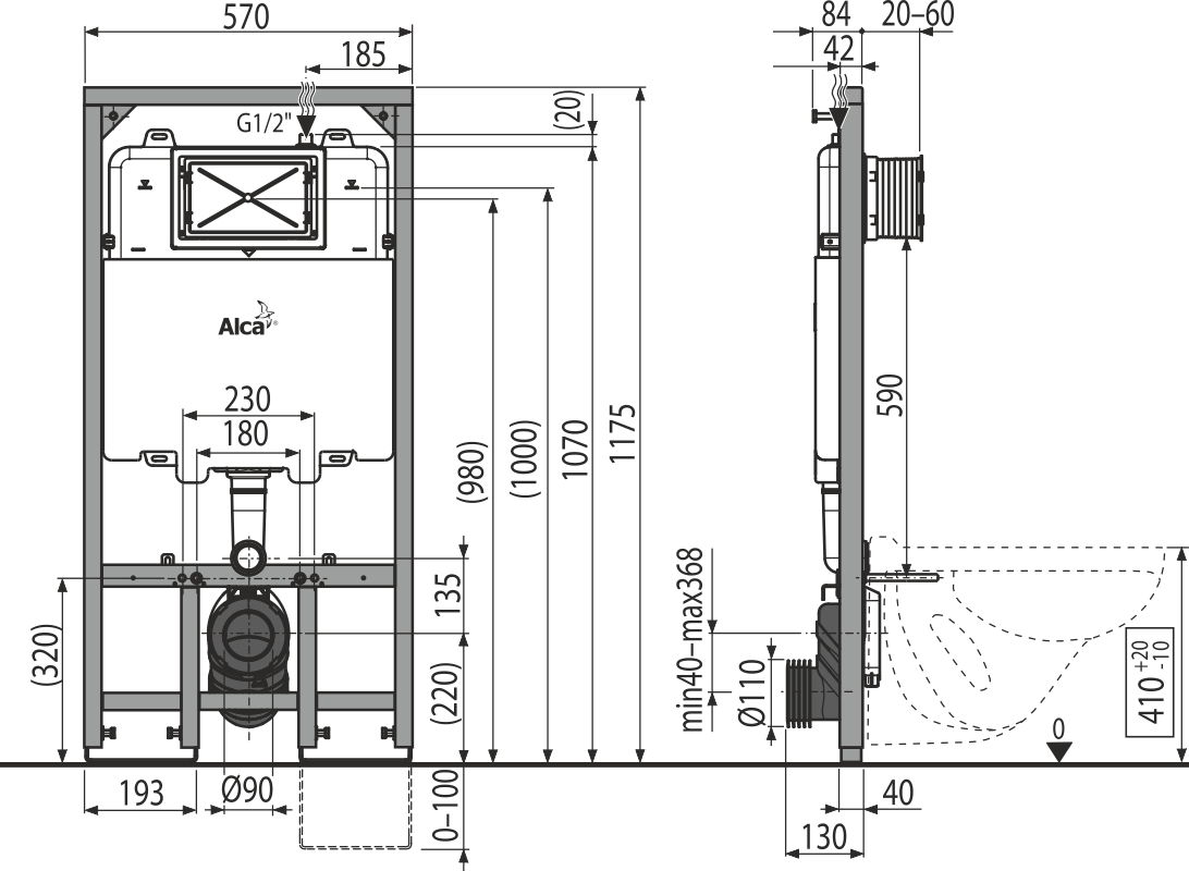 Для монтажа к несущей стене или в гипсокартонную конструкцию, глубина монтажа - 84 мм Для установки подвесного унитаза с интервалом крепления 180 мм или 230 мм Для пола с толщиной стяжки 0-100 Для подвесных унитазов Технические параметры: Рекомендуемый диапазон давления воды 0,3 – 0,5 MPa Рабочий диапазон давления воды 0,05 – 0,8 MPa Гигиенический резерв 3 л Объем воды в бачке 9 л Подвод воды к задней стенке бачка или сверху бачка осуществляется с помощью монтажных отверстий G1/2 " Стандартные настройки малого смыва 3 л Стандартные настройки большого смыва 6 л Несущая способность 400 кг Свойства:Двойной смыв, независимо регулируемый, с гигиеническим резервом Совместим со всеми кнопками управления Alcaplast, за исключением сенсорных кнопок Конструкция полистирольной изоляции, предотвращает процесс конденсации на поверхности бачка и ослабляет вибрацию встроительной конструкции Конструкция рамы позволяет фиксацию к самостоятельному достаточно жесткому гипсокартонному профилю или перед несущей стеной Крышка сервисного отверстия упрощает процесс монтажа и защищает от влаги и грязи Материал несущей конструкции: металл обработанный порошковой краской Монтажная глубина рукава регулируется от 20 до 60 мм Бачок сделан из одного фрагмента полипропилена, что обеспечивает его 100% герметичность Выдвижные ноги с регулировкой в диапазоне 0-100 мм Подвод воды к задней стенке бачка или вверху бачка Угловой вентиль с возможностью подключения к системе трубопроводов Mepla Возможность сервиса без использования инструментов Монтажная глубина - 84 мм Обозначение центрирования и нивеляции
