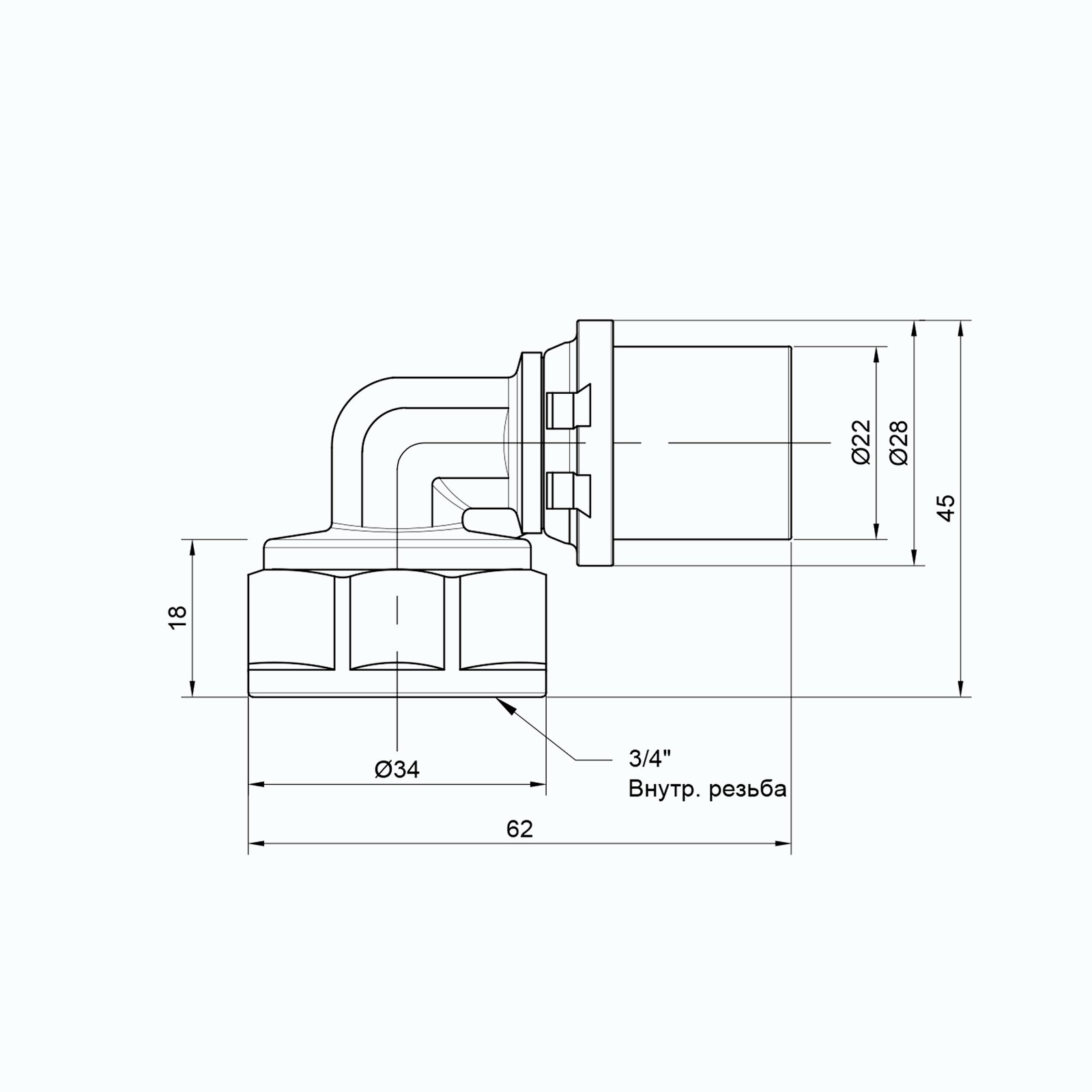 Коліно 16х3/4"з NTM