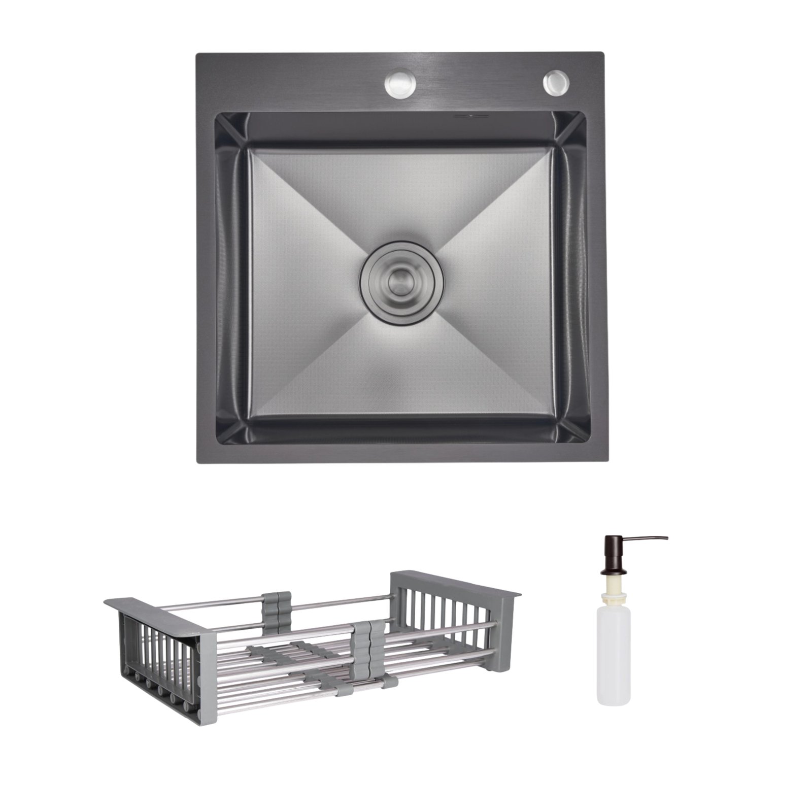 Набір доповнений дозатором і кошиком Lidz K01G, що забезпечує повний функціонал для роботи на кухні. Міцність нержавіючої сталі та інноваційний дизайн роблять цей комплект ідеальним вибором для сучасної оселі.
