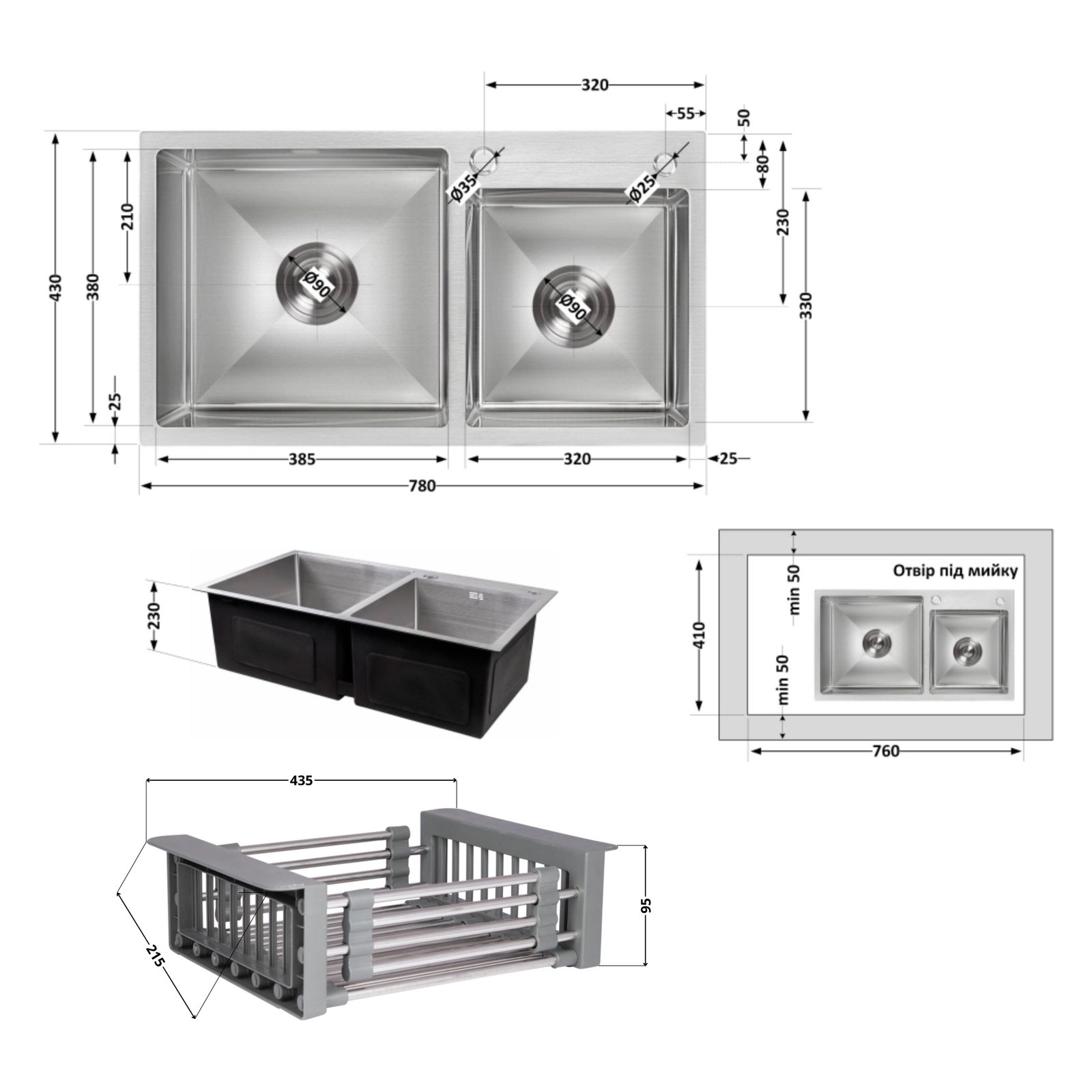 Набір включає дозатор та кошик Lidz K01G. Використання двох чаш забезпечує ідеальний порядок: в одній можна мити посуд, а в іншій — ополіскувати продукти за допомогою кошика.