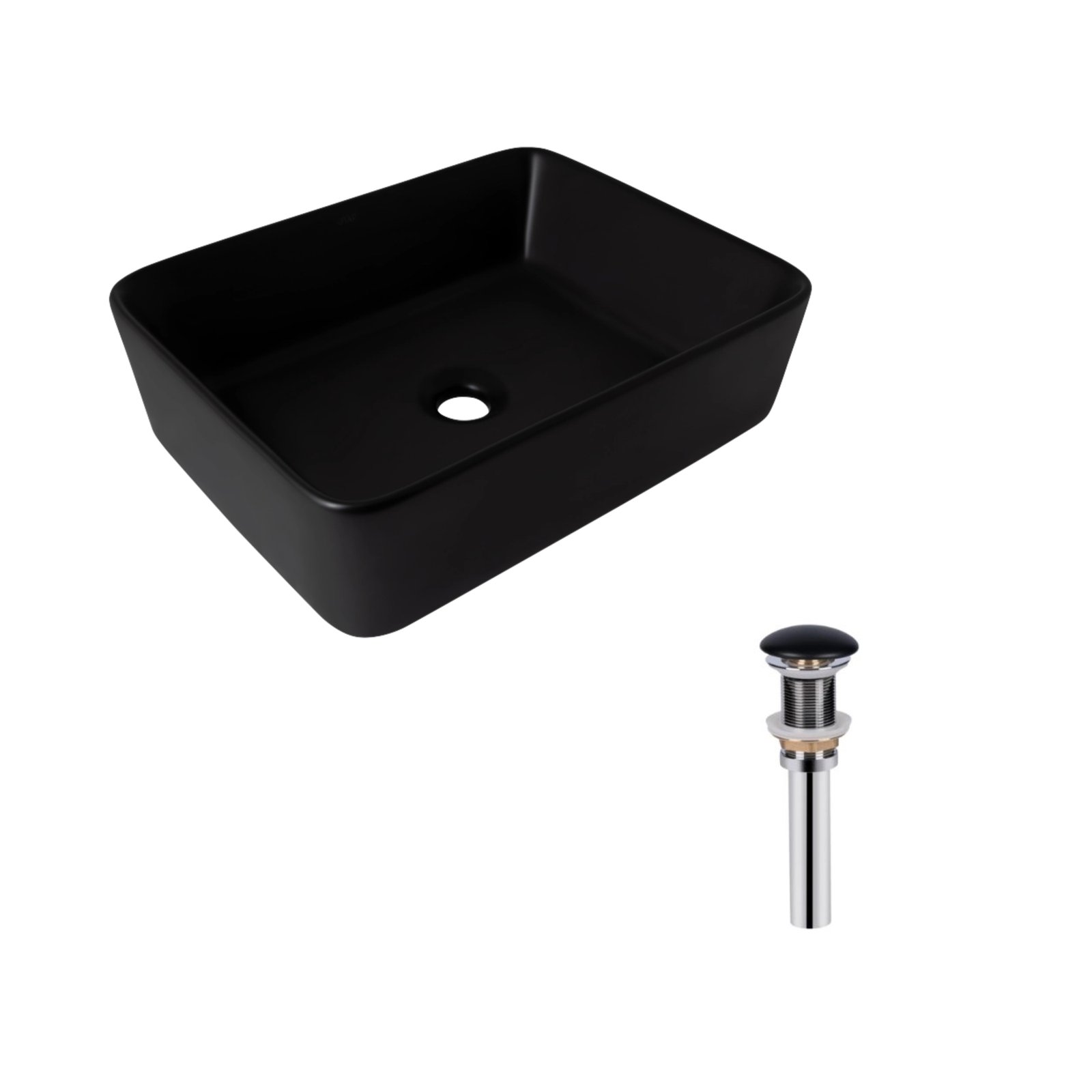 Комплект Qtap Tern: Раковина накладна прямокутна Matt Black + Донний клапан PU03: Сучасний комплект із накладною раковиною в матовому чорному кольорі та донним клапаном PU03. Компактні розміри і прямокутна форма роблять цей набір чудовим вибором для стильних інтер'єрів, додаючи родзинку дизайну ванної кімнати.