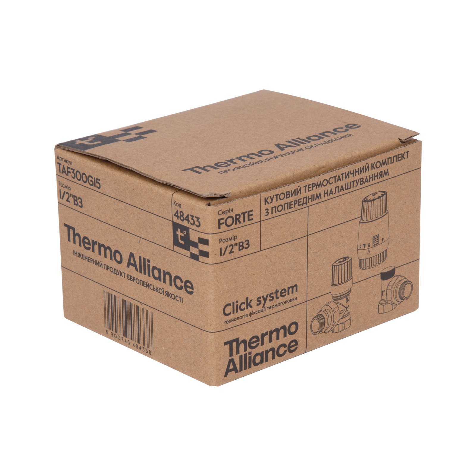 Кутовий термокомплект Thermo Alliance Forte TAF300G15 — надійне рішення для точного регулювання температури в системі опалення. Оснащений функцією попереднього налаштування для балансування потоку теплоносія та системою антипротікання, що забезпечує додаткову безпеку під час експлуатації. Виготовлений із високоякісних матеріалів, комплект гарантує довговічність і стабільну роботу навіть за інтенсивного використання.