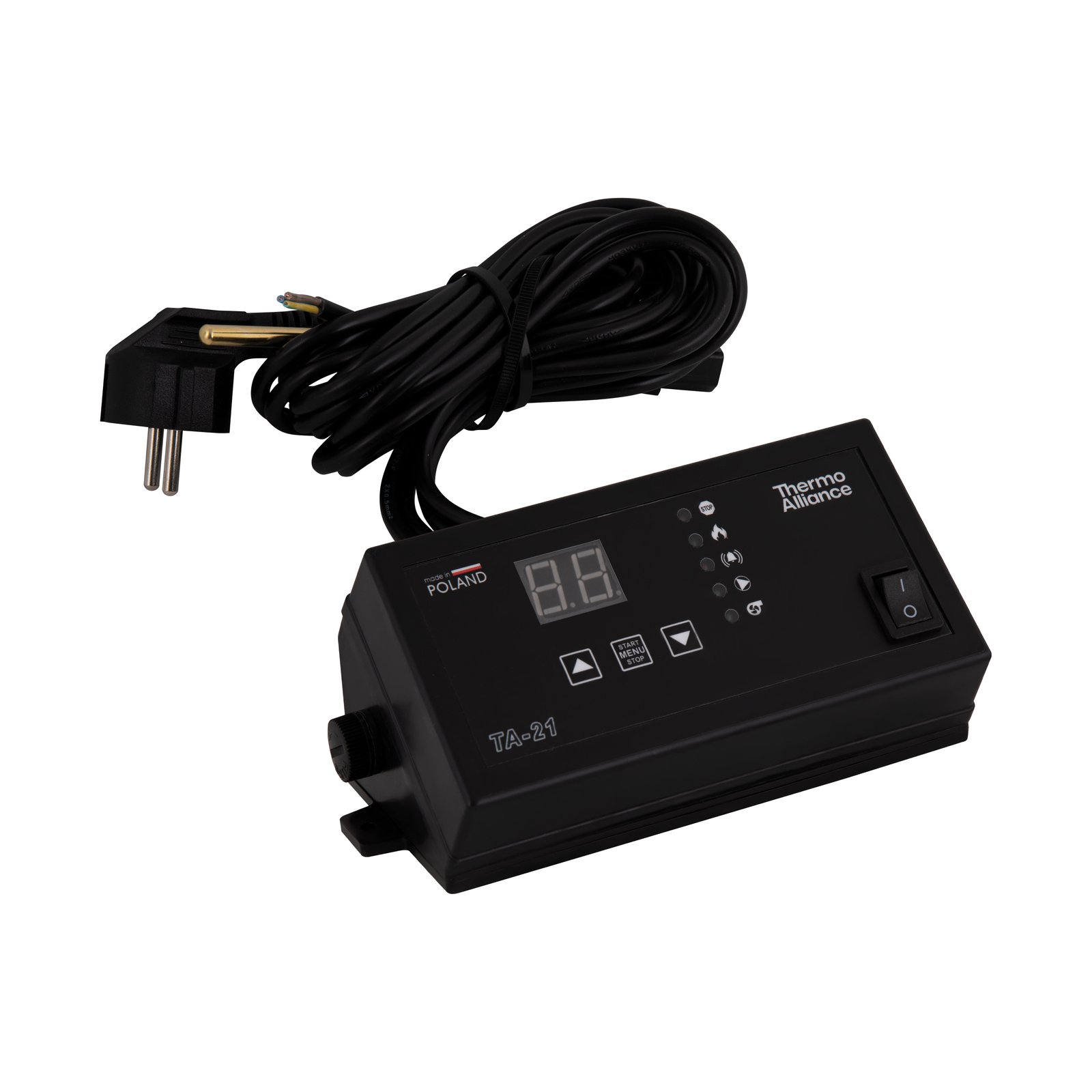 Контролер для котла TA21 Thermo Alliance призначений для автоматичного керування вентилятором і циркуляційним насосом системи опалення, забезпечуючи ефективну та безпечну роботу твердопаливного котла. Пристрій підтримує задану температуру води в системі, регулюючи оберти вентилятора, та вмикає насос центрального опалення при досягненні необхідної температури. Простий в налаштуванні та зручний у використанні, контролер допомагає знизити витрати палива та продовжити термін служби обладнання.