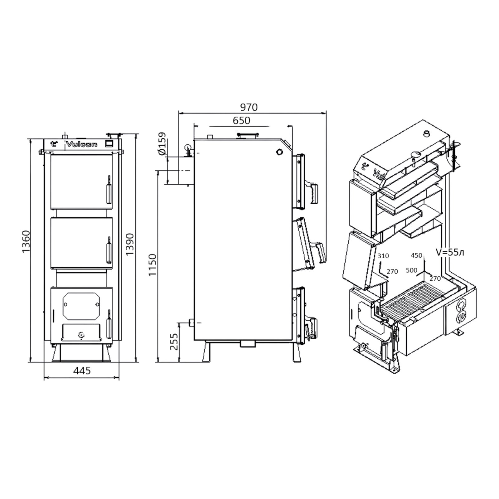 Твердопаливний котел Thermo Alliance Vulcan SF 15 VSF15V40 працює з високим коефіцієнтом корисної дії та може забезпечити теплом приміщення площею до 150 м². Високий показник ККД досягається за рахунок чотириходового теплообмінника з великою площею. Велика камера для завантаження палива забезпечує тривале горіння. Сталевий водогрійний котельний агрегат обладнаний колосниковою решіткою з чавуну та передбачає ручне завантаження палива: дров, кам'яне вугілля, брикети. Теплоізоляція стін — мінеральн