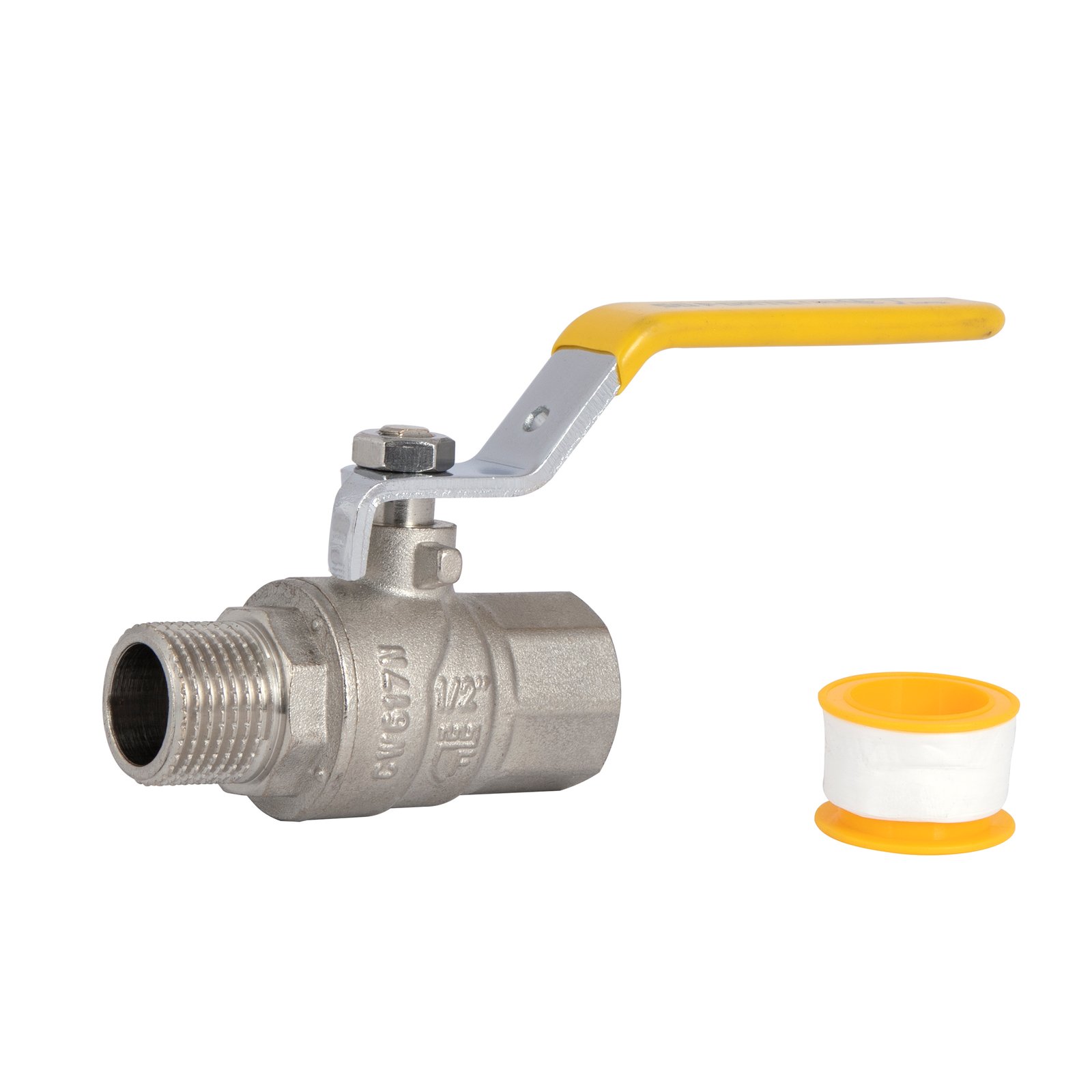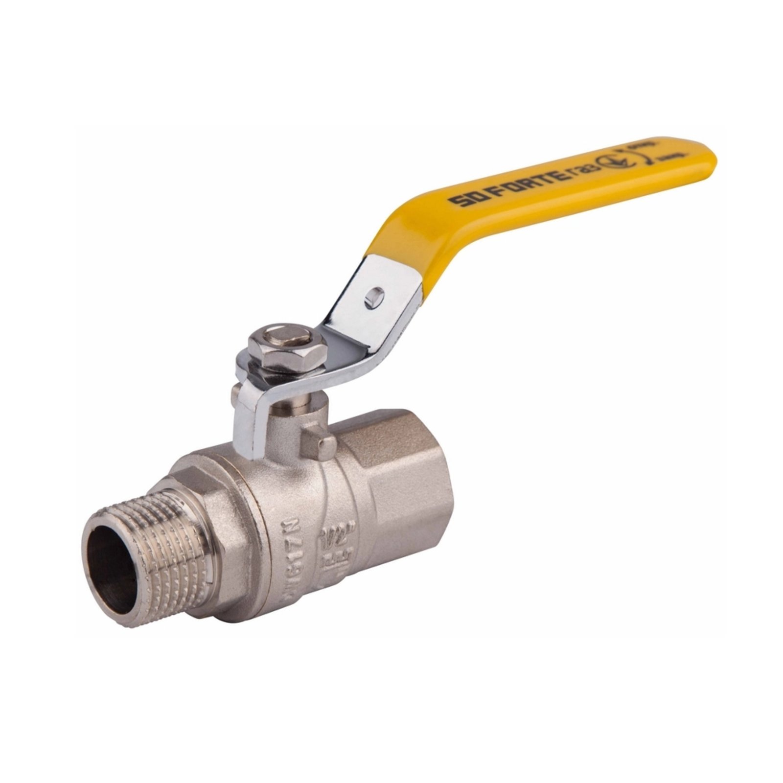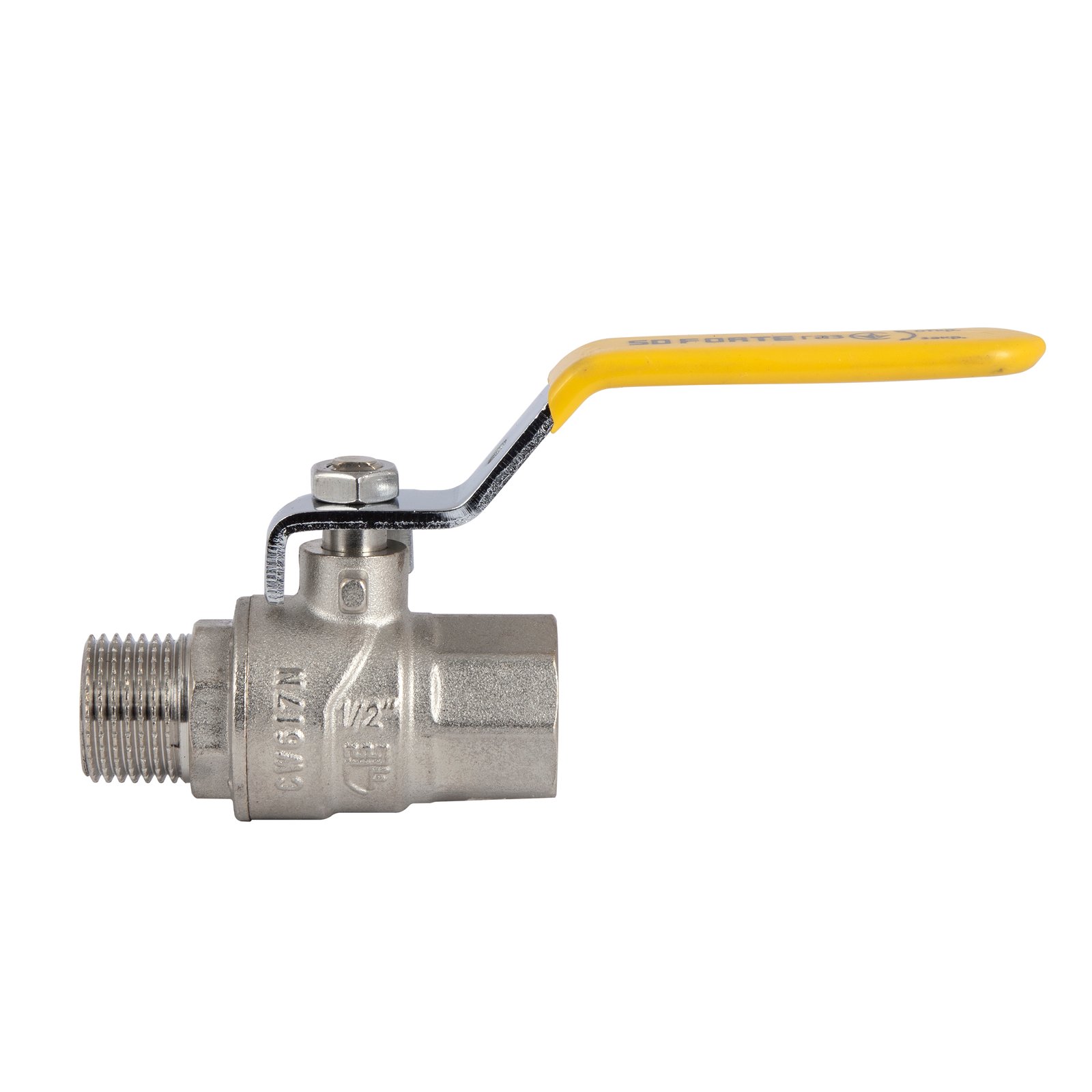 Кран кульовий SD Forte 1/2" ВЗ для газу (ручка) — латунний нікельований елемент запірно-регулюючої арматури. Застосовується в газопровідних системах.