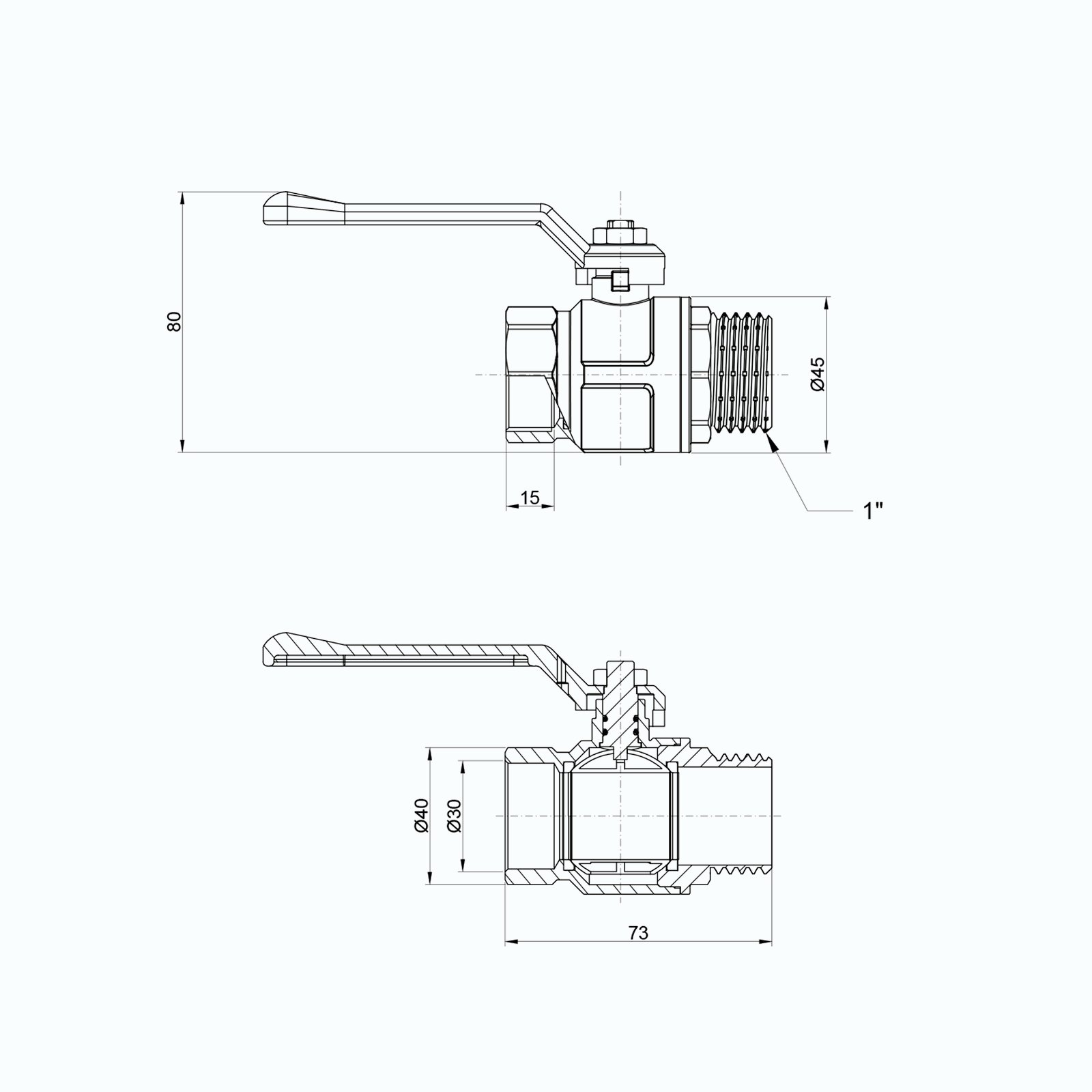 Повнопрохідний кульовий кран ICMA 1" з зовнішньою/внутрішньою різьбленнями, а так само з червоною алюмінієвою ручкою, противибухових штоком з подвійним гумовим кільцем. Сфера застосування кульового крана ICMA це системи опалення та охолодження. Корпус кульового крана виконаний з високоякісної горячештампованной латуні CW617N - UNIN EN 12165, покриття вироби - нікелювання.