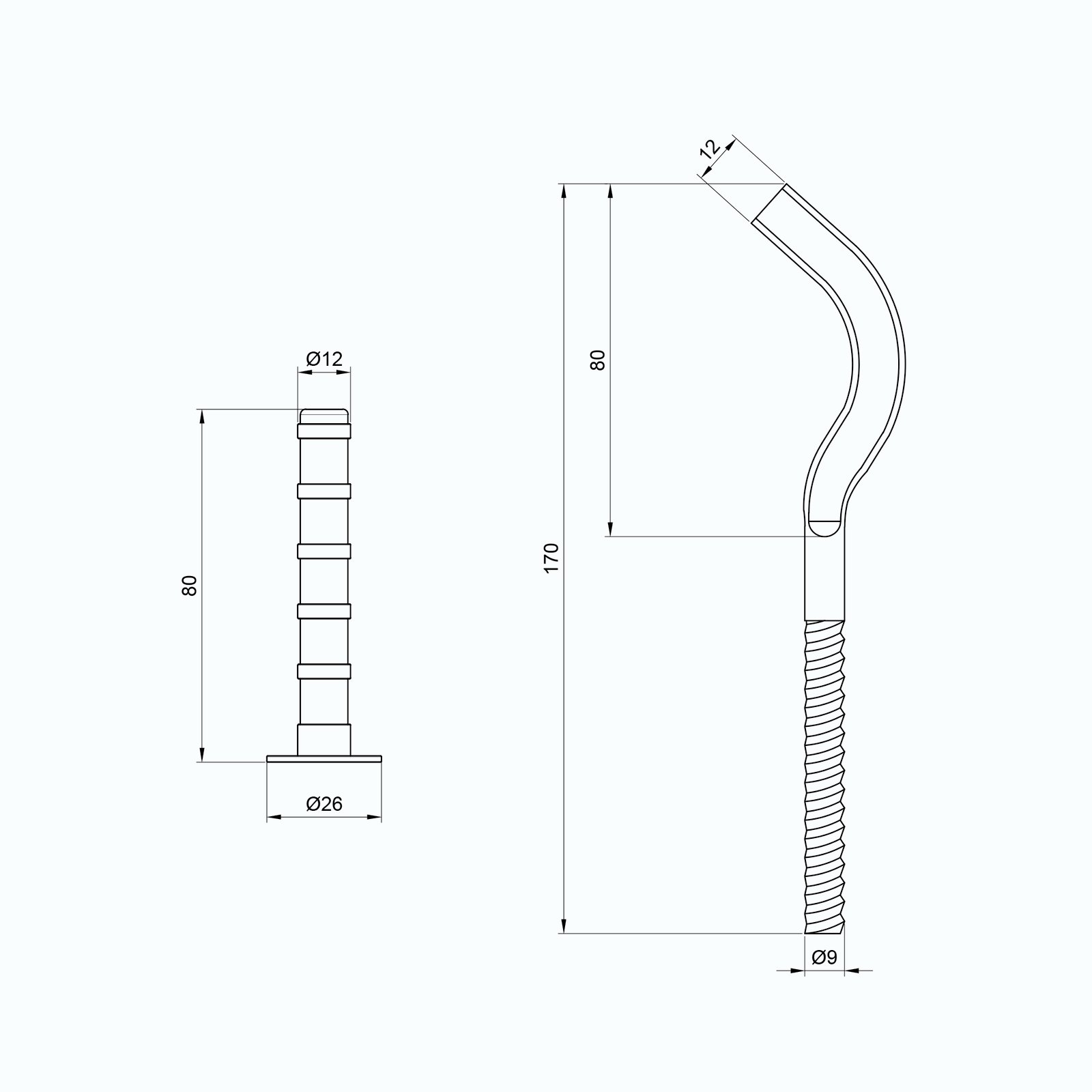 Діметр кронштейна – 8 мм, довжина – 170мм. Комплектація