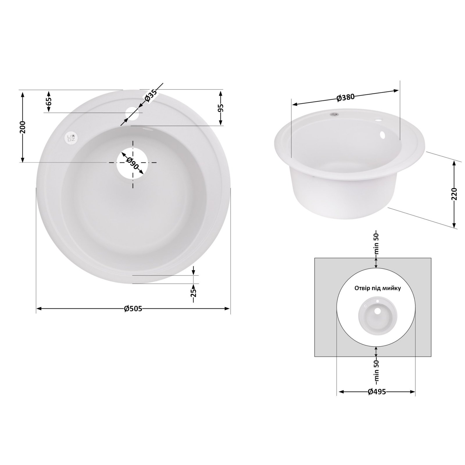 Кругла кухонна мийка Lidz (WHI-01) — компактне та практичне рішення для будь-якої кухні. Врізна мийка з міцного штучного каменю стійка до пошкоджень, перепадів температур і впливу побутової хімії. Завдяки лаконічній круглій формі ідеально підходить для невеликих кухонь або кухонних зон, забезпечуючи комфорт у щоденному використанні. У комплект входить сифон і злив-перелив для зручного монтажу.