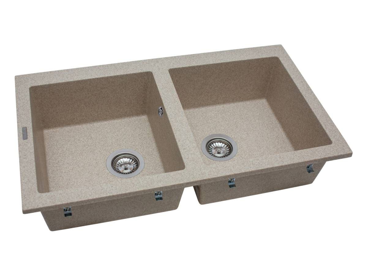 Прямокутна кухонна мийка WESTEROS має однорідну текстуру та колір - пісочний. Кількість чаш - 2. Тип установки - врізний. Матеріал мийки - Mirastone - не всочує запахи, відштовхує жир та забруднення, а також не змінює кольору в процесі експлуатації.