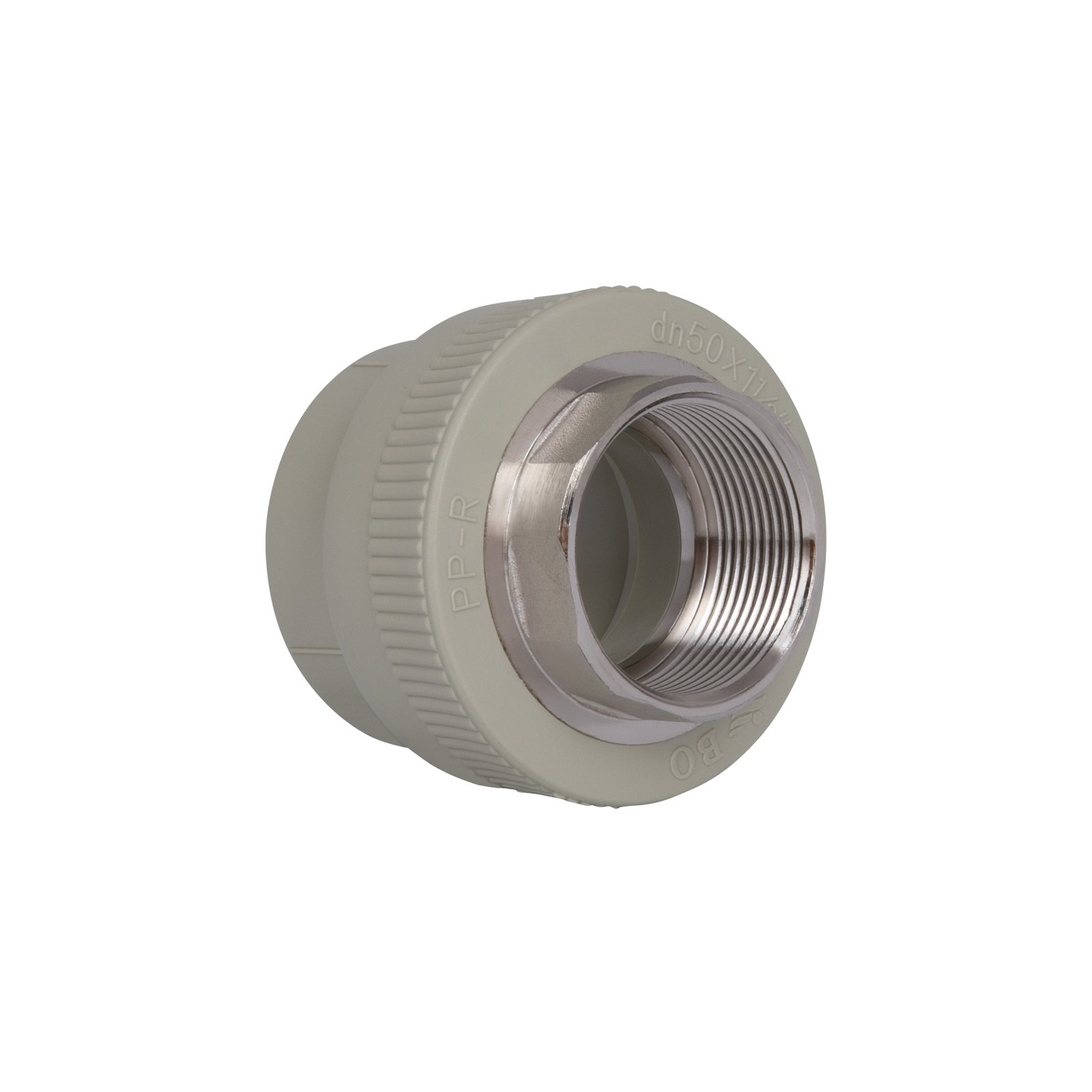 Шестигранна муфта PPR Blue Ocean 50х1" 1/2 ВР виконана з поліпропілену з внутрішньою трубною різьбою з латуні діаметром 1" 1/2 і шестигранною ділянкою під гайковий ключ. Зі зворотного боку передбачений вихід з діаметром 50 мм для підключення до поліпропіленової труби методом поліфузного зварювання. Матеріал виробу швидко плавиться та не прилипає до насадок паяльника. Крім цього, гарантує герметичність та повітронепроникність з'єднання.