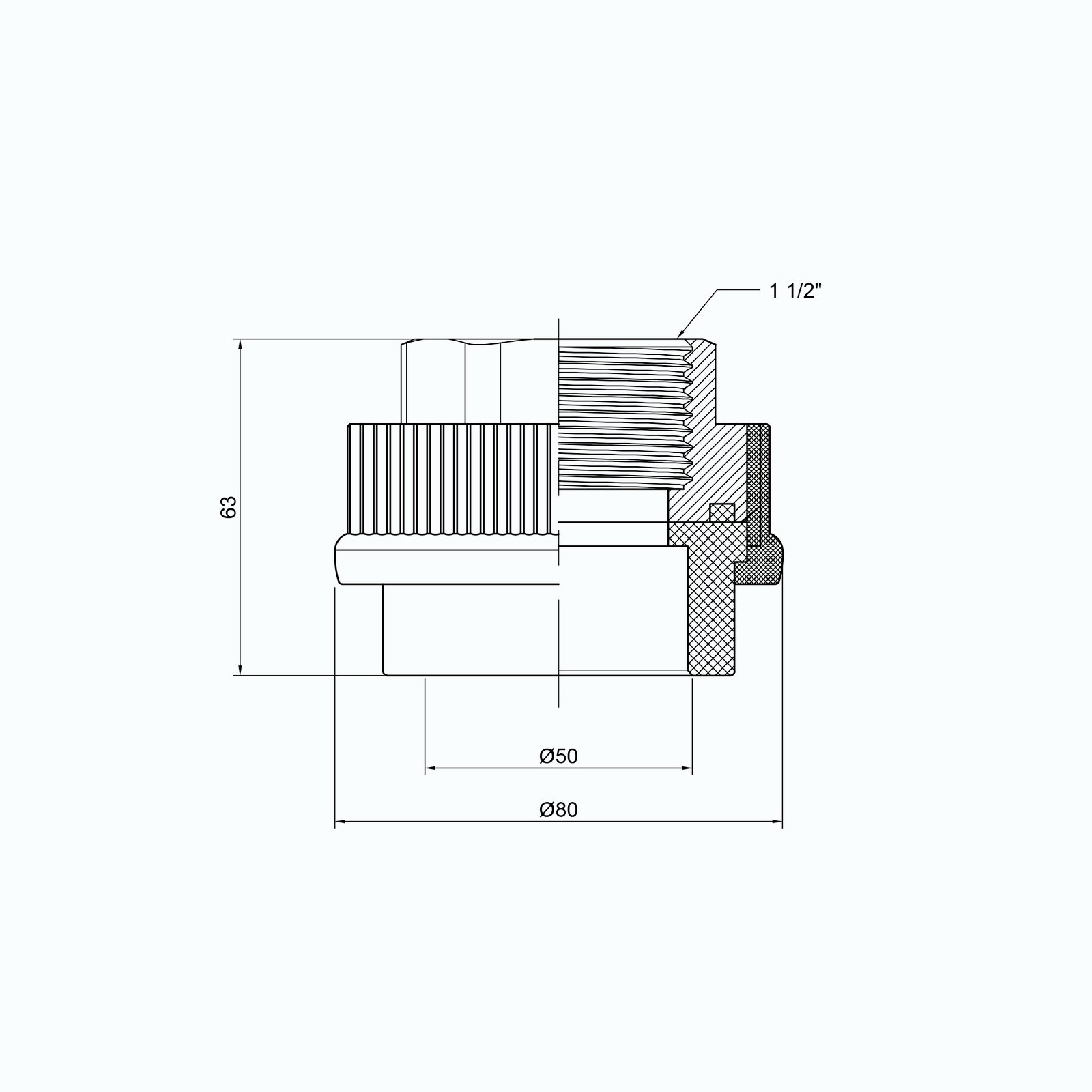 Муфта PPR Thermo Alliance 50х1" 1/2 ВР зроблена з поліпропілену, вставка з півторадюймовою внутрішньою різьбою — латунна, з шестигранною ділянкою під гайковий ключ. Діаметр для зварного стикування з ППР-трубою становить 50 мм. Монтаж виконують методом поліфузної пайки в розтруб, з'єднання герметичне, міцне й надійне. Такий фітинг — необхідна деталь для з'єднання в одну систему трубопроводів з поліпропілену та елементів інженерних комунікацій с нарізним під'єднанням.