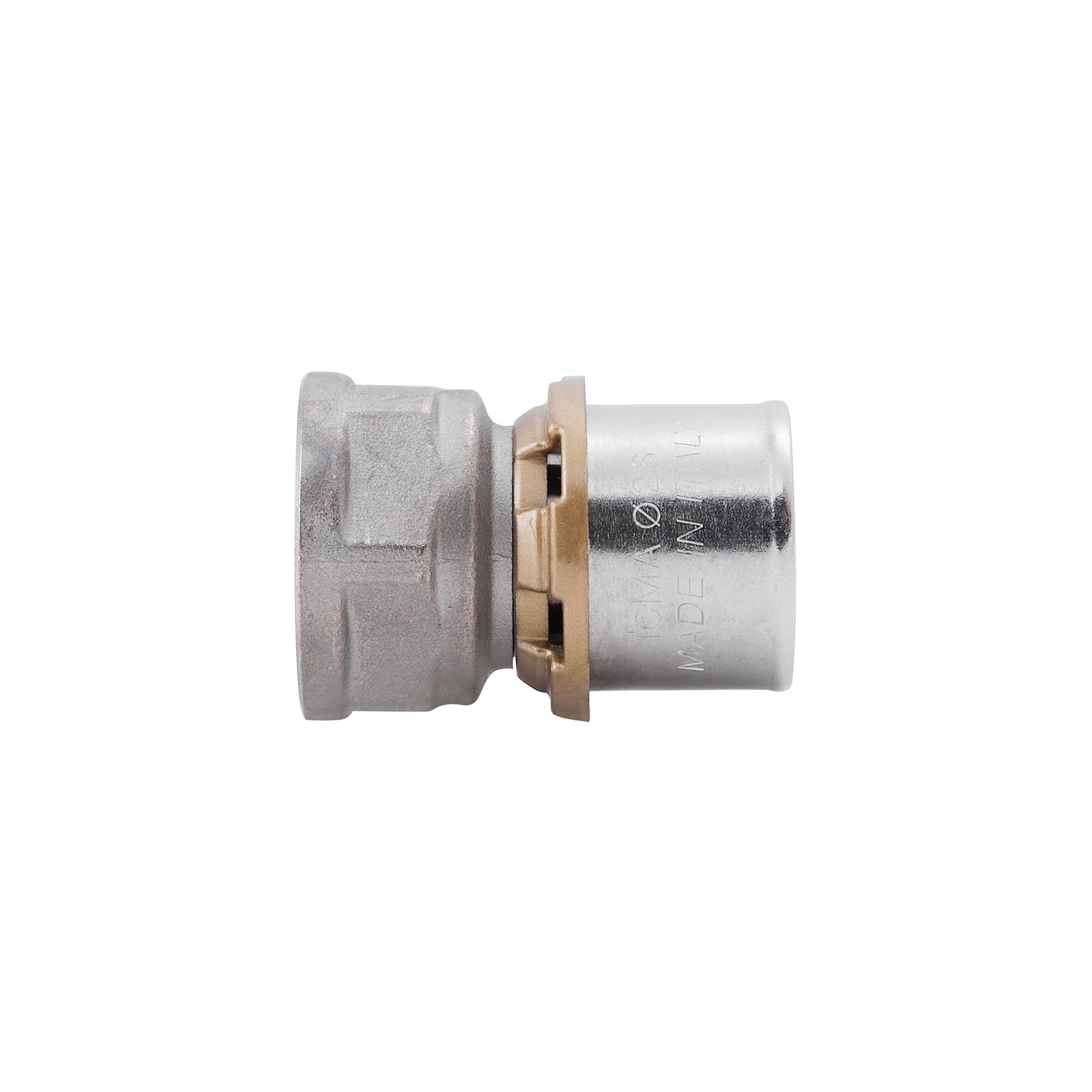 Прес-фітинг перехідник ICMA Sempiter Арт. 401 з розміром підключення 3/4"х26 для металопластикової труби спроектований для застосування в системах водопостачання, опалення, і охолодження. Прес-фітинг Sempiter з радіальним пресуванням і з внутрішнім різьбленням дуже простий, і зручний в монтажі, і спільно з металопластиковою трубою створює надійну, швидку і недорогу систему. Прес на діаметр металопластикової труби 26 мм стискає гільзу з нержавіючої сталі, яка надійно фіксує трубу на фітингу.