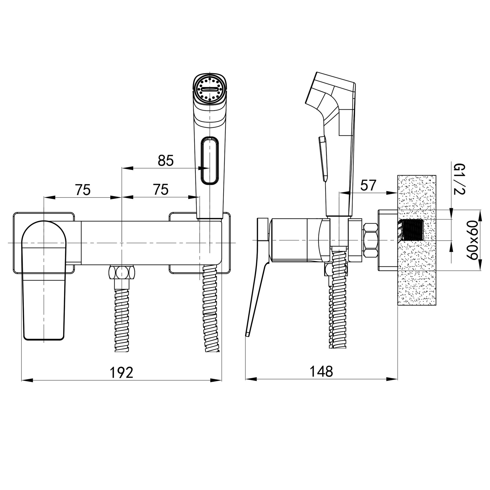 Лійка для гігієнічного душу, змішувач, душовий шланг, кріпильні деталі.