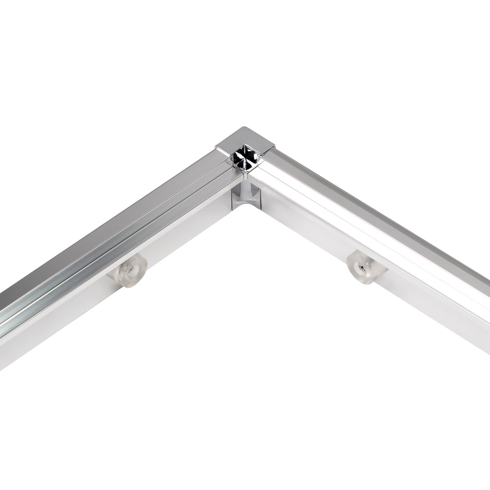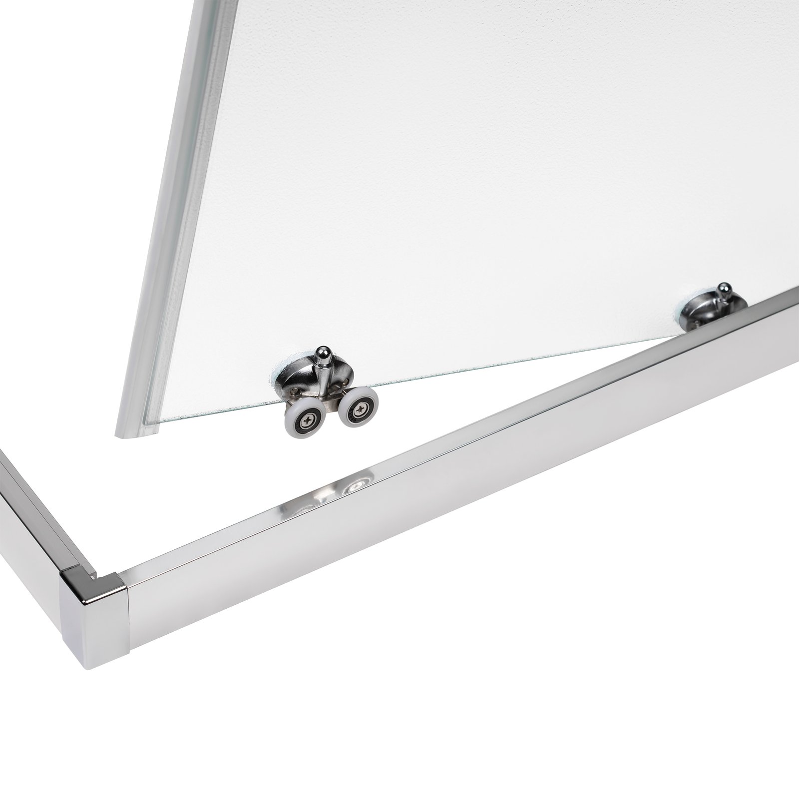 Подвійні ролики, ручки, верхній профіль, нижній профіль, бічні профілі, набір ущільнювачів, 2 скляні двері, 2 глухі скла, комплект кріплень, заглушки, елементи, що з'єднують, фіксатори. Піддон, ніжки, сифон із гідрозатвором.