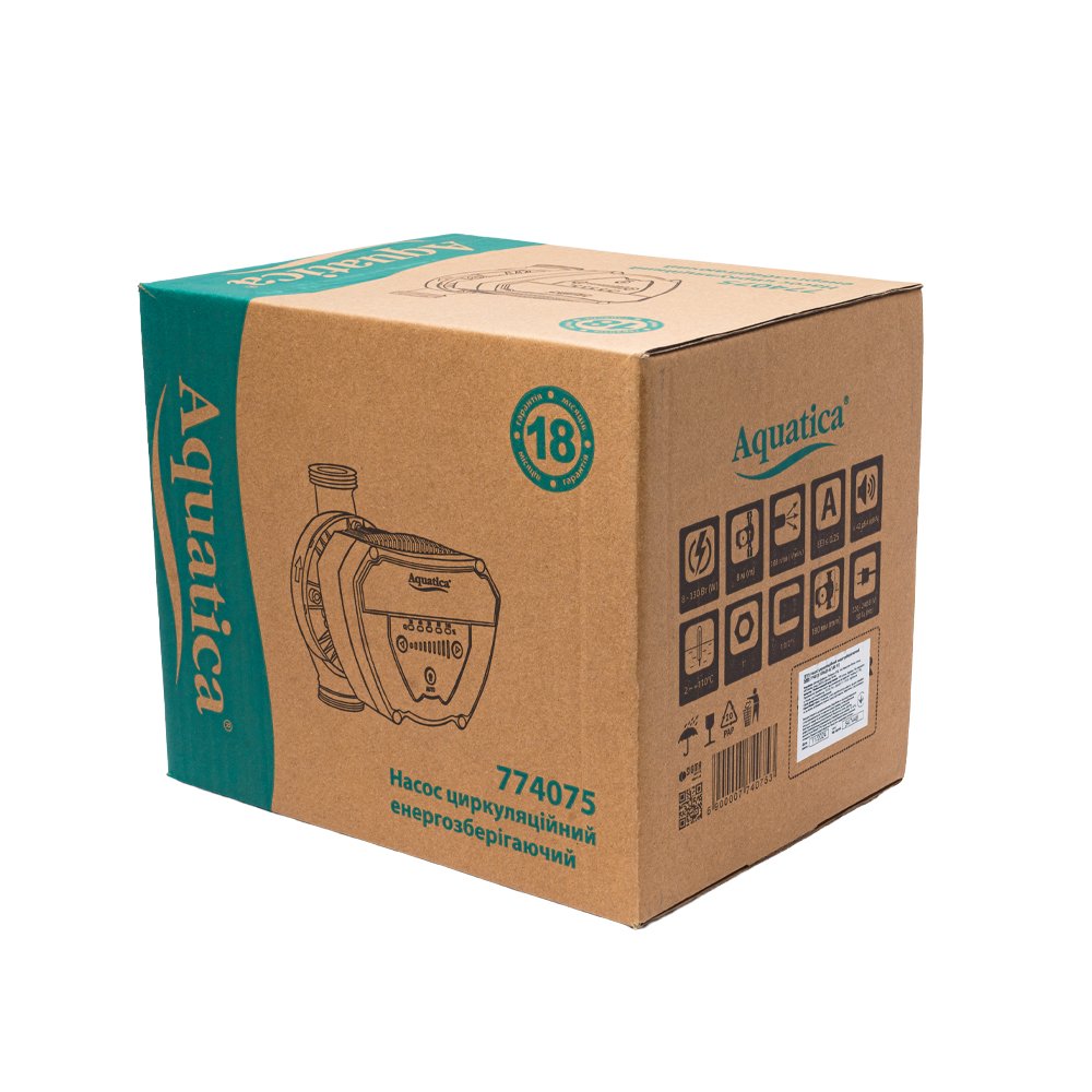 Насос циркуляційний енергозберігаючий 8-130Вт Hmax 8м Qmax 108л/хв Ø1½" 180мм + гайки Ø1" AQUATICA GPA25-8/180 IV (774075)