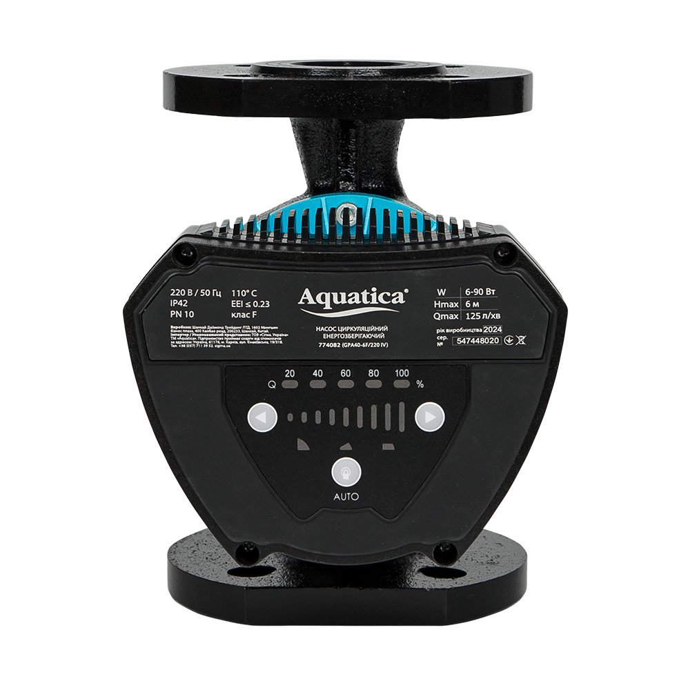 Насос циркуляційний енергозберігаючий фланц 6-90Вт Hmax 6м Qmax 125л/хв DN40 220мм + зворотний флан AQUATICA GPA40-6F/220 IV (774082)