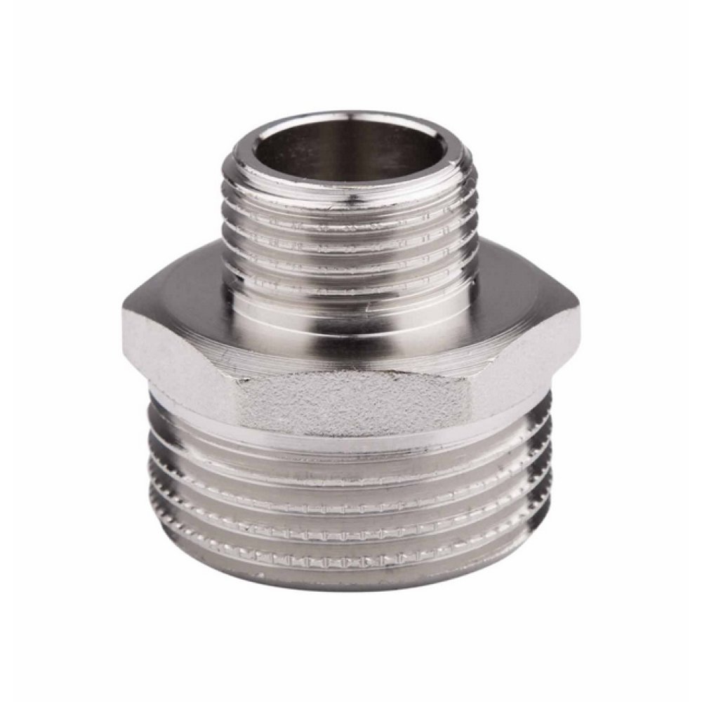 Ніпель редукційний SD Forte підключення 1"х1/2" ЗЗ виготовлений з нікельованої латуні, призначений для з'єднання труб різних діаметрів.