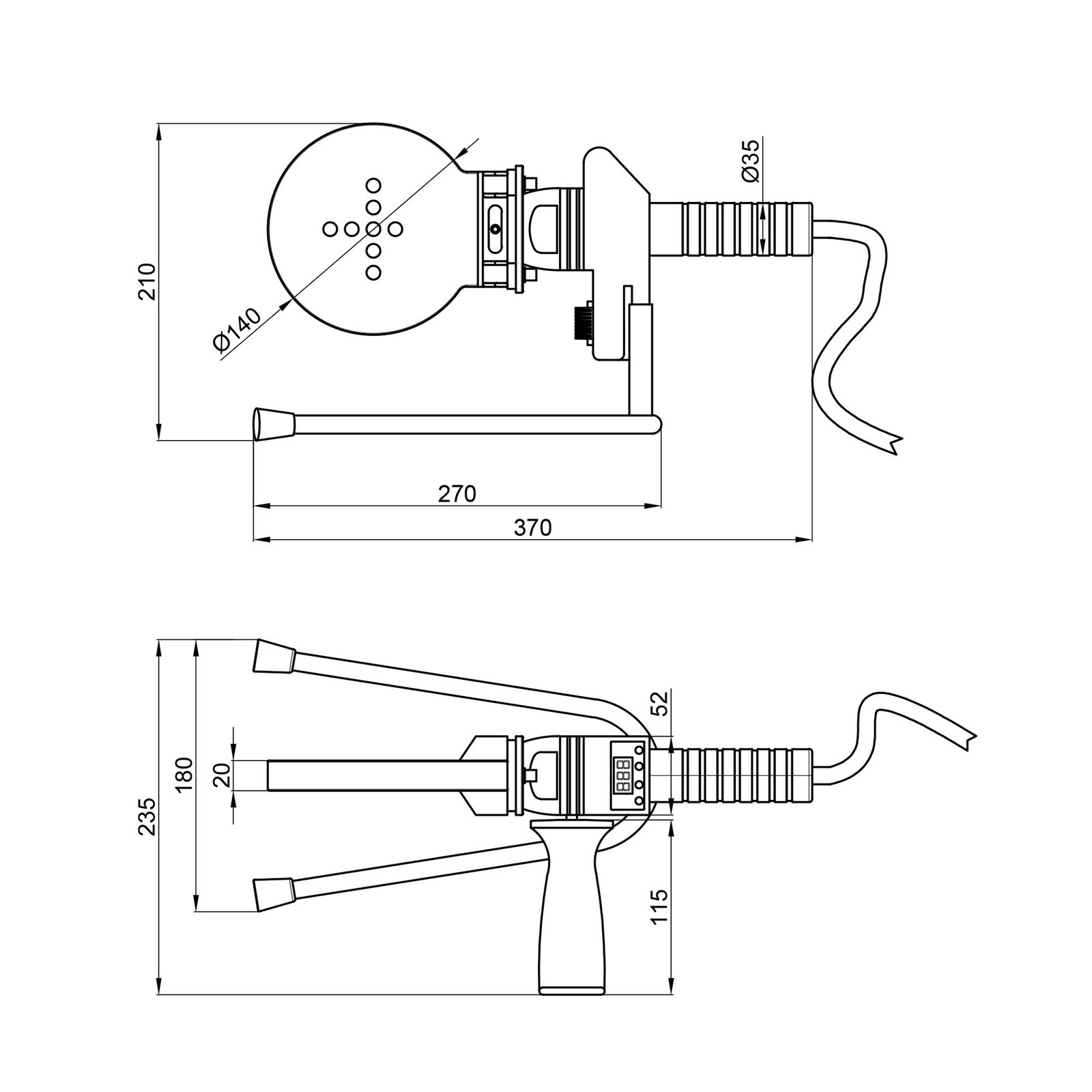 Паяльник Blue Ocean 75-110 з верхнім цифровим дисплеєм виконаний зі зручною прогумованою рукояткою і корпусом синього кольору, рогообразною підошвою з чорними гумовими насадками проти ковзання під час роботи і плоским нагрівальним елементом з отворами для насадок. Потужність 1200 Вт дозволить якісно і швидко спаяти поліпропіленові труби з зовнішнім діаметром від 75 до 110 мм. Зручність експлуатації полягає в можливості контролювати температурний режим і ритм охолодження-нагріву.
