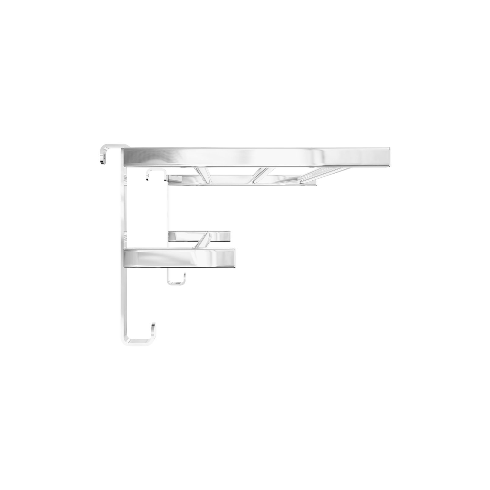 Спеціально розроблена полиця має гачки з обох боків, що робить її ідеальним варіантом для розміщення рушників, халатів тощо. Вона додасть практичності вашій сушці, забезпечуючи легкий доступ до рушників та компактне зберігання.