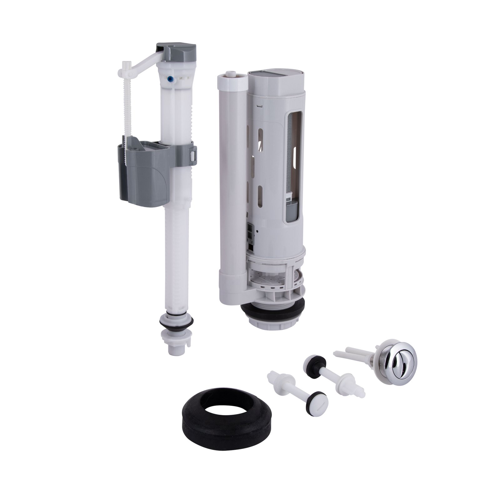 Qtap HY3 (Nando) комплект арматури для бачка унітазу з подвійною круглою кнопкою змиву 4,8 см та клапаном нижньої подачі води, 3/6L CHR