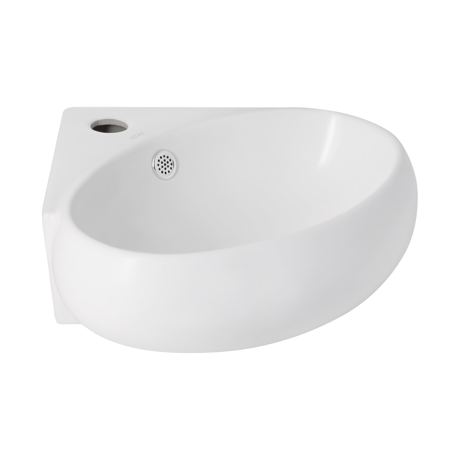 Раковина Qtap Leo QT11115010WN має ергономічну форму, виконана з якісної кераміки білого кольору з отворами для змішувача і переливу. Вона встановлюється на стіну в кут за допомогою кріплень, які входять в комплектацію. На пристінній поверхні є можливість поставити аксесуари та приладдя. Сифон для раковини купується окремо.