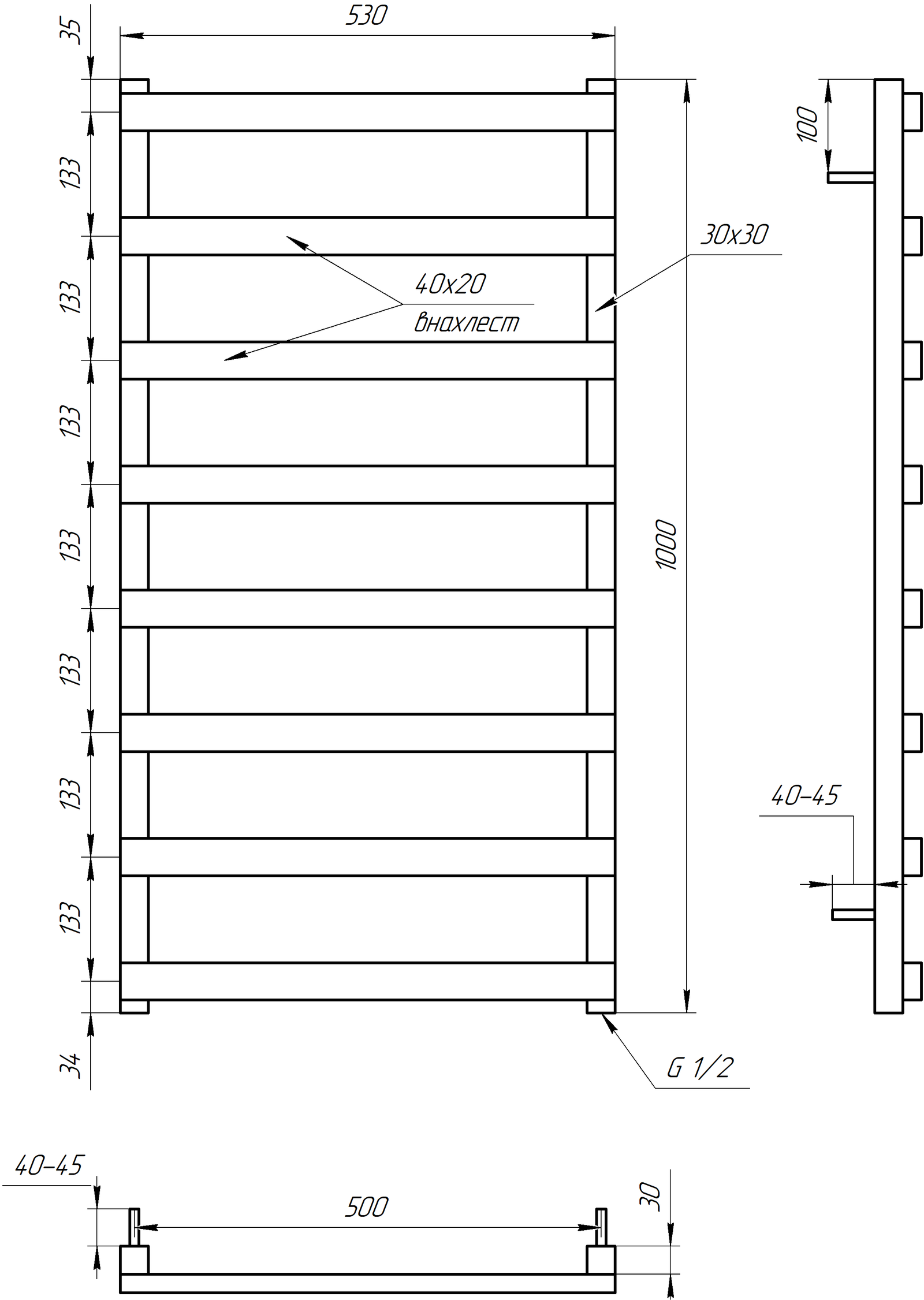 Рушникосушка Laris Класік П6 500 х 600