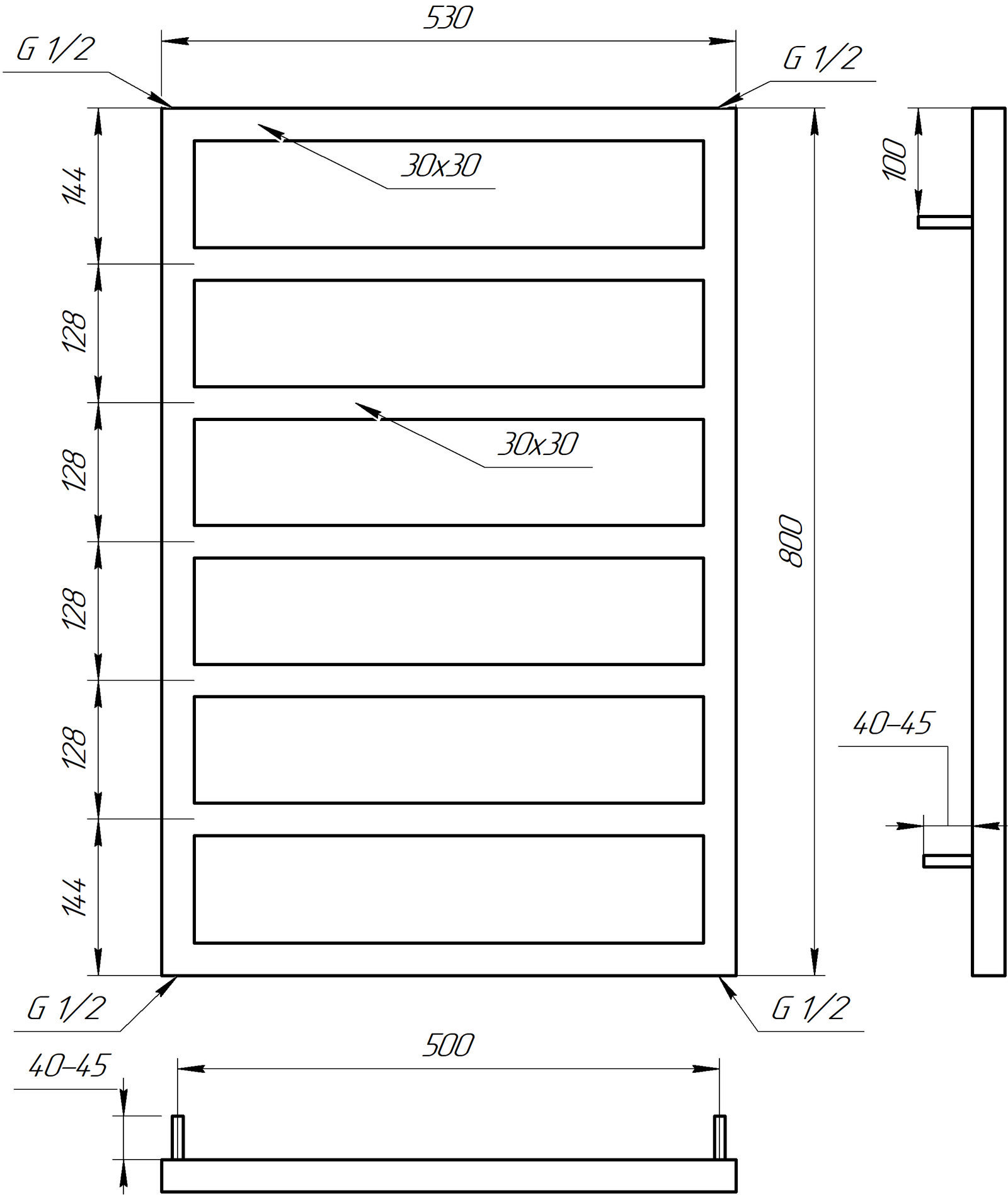 Рушникосушка Laris Класік П6 400 х 600 б/в 1/2" мц 500