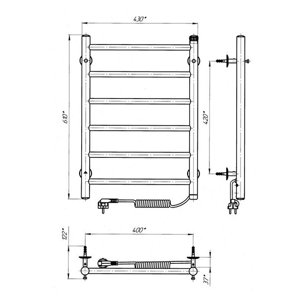Рушникосушка Laris Альфа П6 400 х 600 Е S3 (підкл. справа)