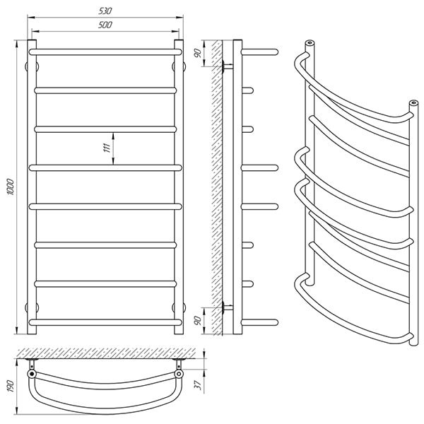 Рушникосушарка - 1 шт, кріплення (шуруп оцинкований з дюбелем, гвинт, втулка, штифт, стійка) - 4 шт, кран Маєвського 1/2 " - 1 шт, заглушка різьбова 1/2 " - 2 шт, ковпачок декоративний - 2 шт, ключ шестигранний - 1 шт, упаковка (короб гофрокартонний, чохол поліетиленовий, чохол поліетиленовий для кріплення, короб гофрокартонний для кріплень) - 1 шт, паспорт - 1 шт.