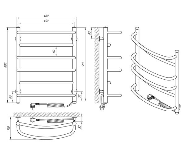 Рушникосушарка – 1 шт, кріплення (шуруп оцинкований з дюбелем, п'ятак, втулка, штифт, стійка) - 4 шт, ключ шестигранний – 1 шт, упаковка (короб картонний, чохол поліетиленовий, чохол поліетиленовий для кріплення, коробочка для кріплень) – 1 шт, паспорт – 1 шт.