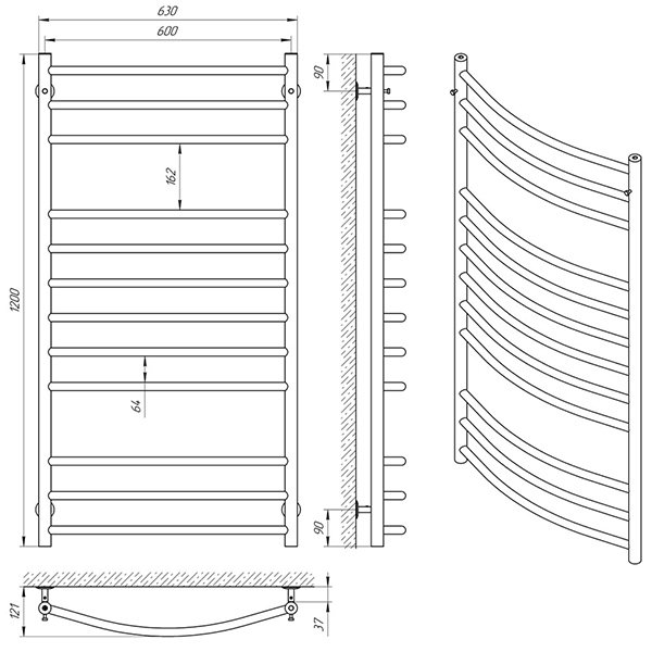 Рушникосушарка - 1 шт, кріплення (шуруп оцинкований з дюбелем, п'ятак, втулка, штифт, стійка) - 4 шт, кран Маєвського 1/2 " - 1 шт, заглушка різьбова 1/2 " - 2 шт, ковпачок декоративний - 2 шт, ключ шестигранний - 1 шт, упаковка (короб гофрокартонний, чохол поліетиленовий, чохол поліетиленовий для кріплення, короб гофрокартонний для кріплень) - 1 шт, паспорт - 1 шт.