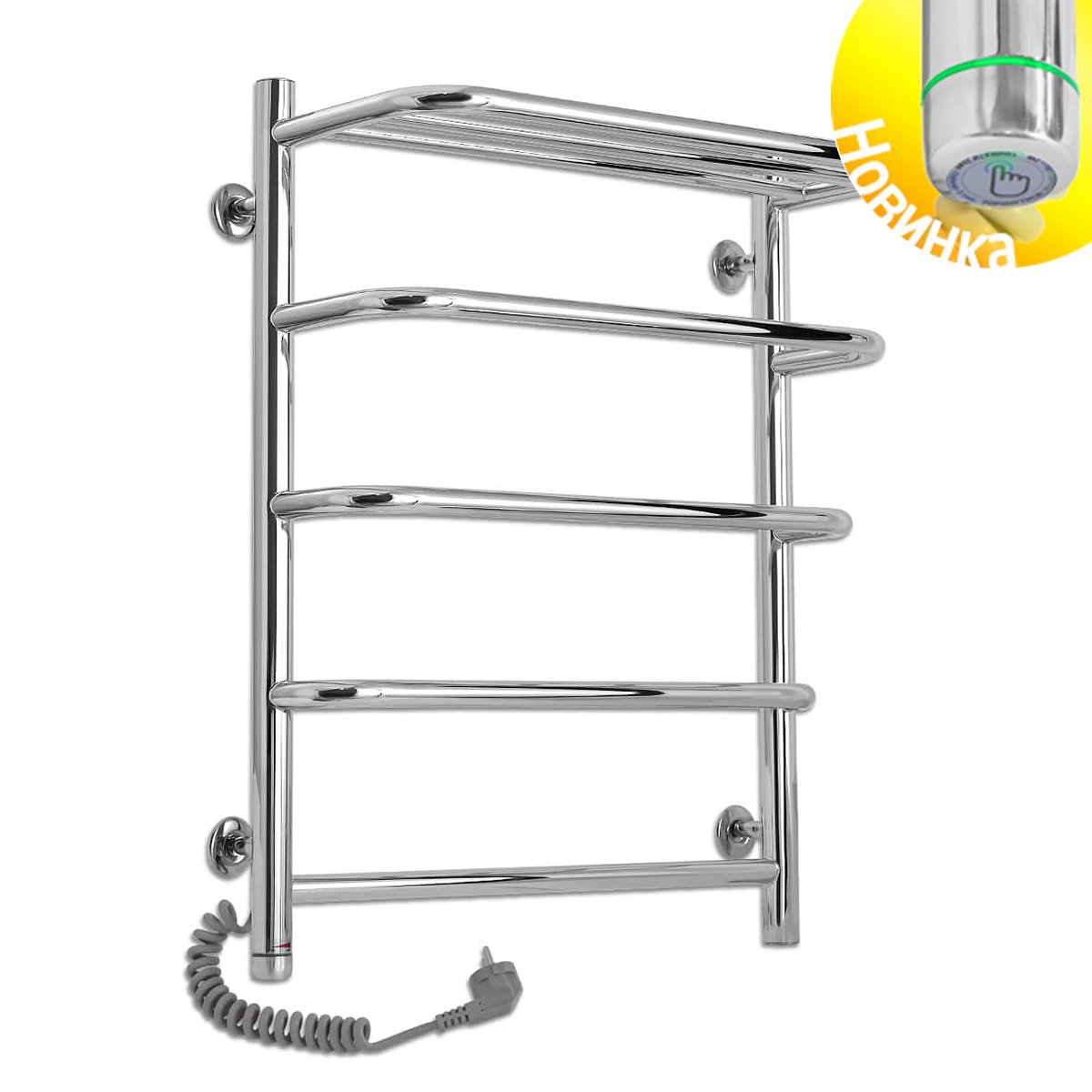 Рушникосушарка – 1 шт, кріплення (шуруп оцинкований з дюбелем, п'ятак, втулка, штифт, стійка) - 4 шт, ключ шестигранний – 1 шт, упаковка (короб картонний, чохол поліетиленовий, чохол поліетиленовий для кріплення, коробочка для кріплень) – 1 шт, паспорт – 1 шт.