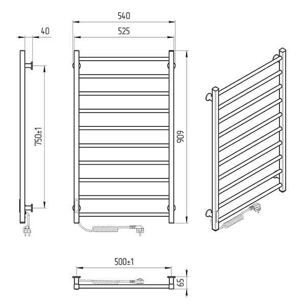 Особливості: керує нагрівом електрорушникосушарки мікропроцесорний термоконтроллер (кнопкове управління). Для початку роботи необхідно задати температуру рушникосушарки. Термодатчик контролює температуру поверхні рушникосушарки, що виключає можливість її перегріву. Серед переваг регулятора - зберігання обраного режиму роботи (при відключенні робота відновитися в запрограмованому користувачем режимі), наявність таймера відключення (3h) і колірної індикації роботи!