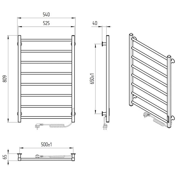 Особливості: керує нагрівом електрорушникосушарки мікропроцесорний термоконтроллер (кнопкове управління). Для початку роботи необхідно задати температуру рушникосушарки. Термодатчик контролює температуру поверхні рушникосушарки, що виключає можливість її перегріву. Серед переваг регулятора - зберігання обраного режиму роботи (при відключенні робота відновитися в запрограмованому користувачем режимі), наявність таймера відключення (3h) і колірної індикації роботи!