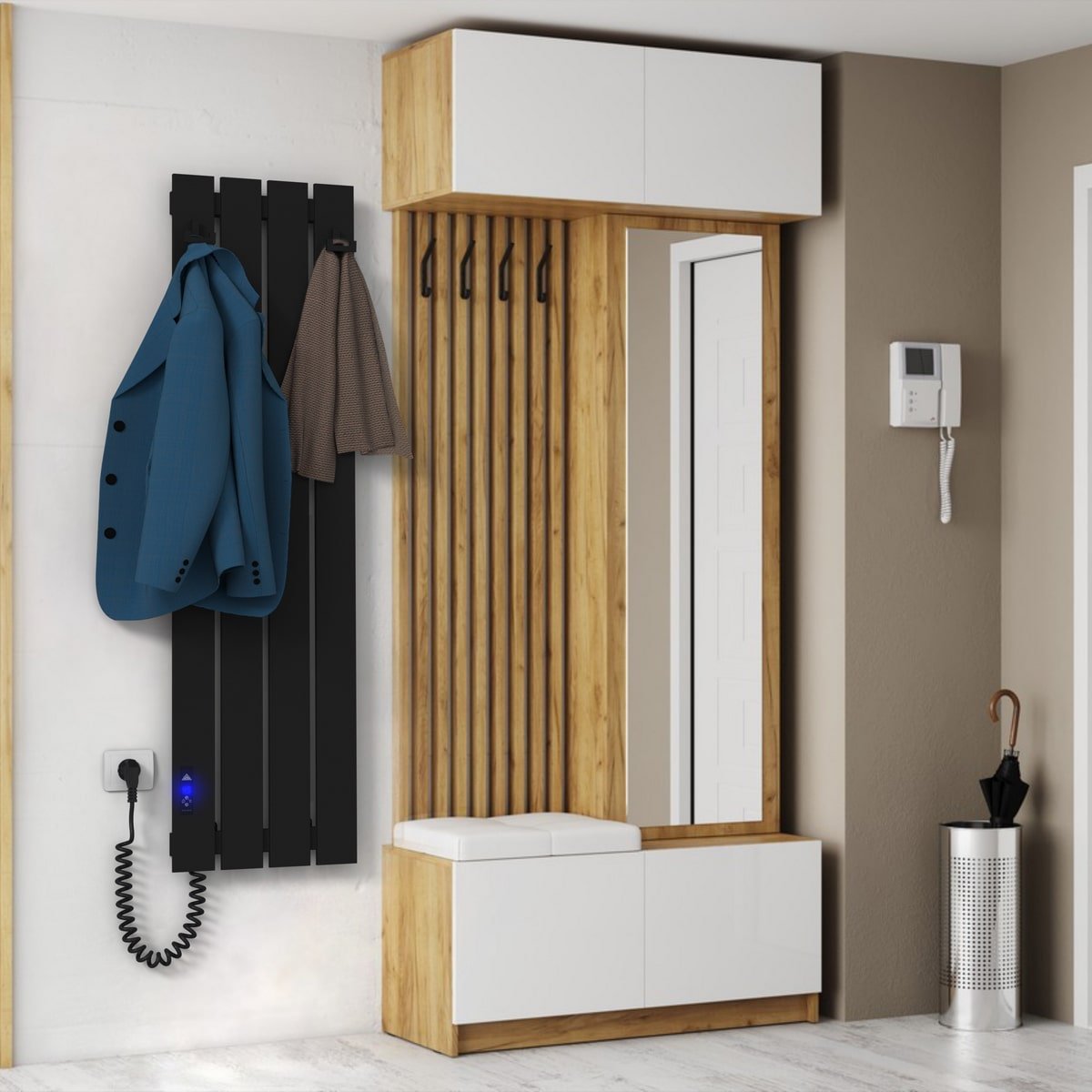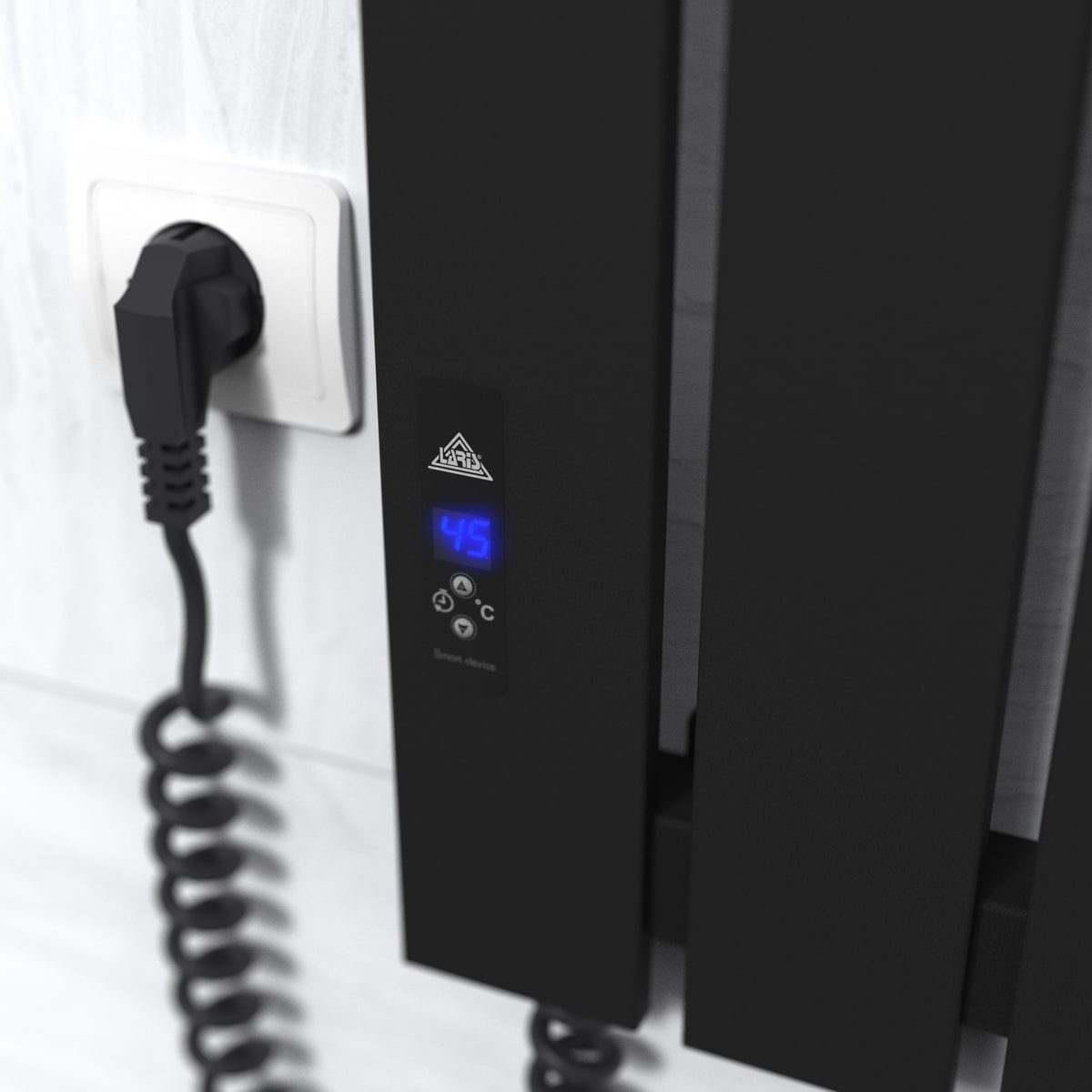 Особливості: керує нагрівом електрорушникосушарки мікропроцесорний термоконтроллер (кнопкове управління). Для початку роботи необхідно задати температуру рушникосушарки в градусах. Термодатчик контролює температуру поверхні рушникосушарки, що виключає можливість її перегріву. Серед переваг регулятора - автоматичне зниження потужності (ЕКО-режим), наявність таймера відключення (1-12h) і блокування кнопок (захист від дітей)!