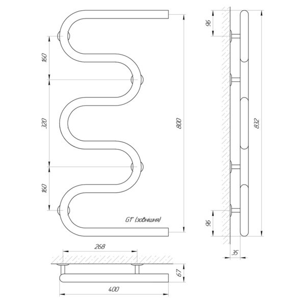 Рушникосушарка - 1 шт, кріплення (шуруп оцинкований з дюбелем, п'ятак, втулка, штифт, стійка) - 4 шт, ключ шестигранний - 1 шт, упаковка (короб гофрокартонний, чохол поліетиленовий, чохол поліетиленовий для кріплення, короб гофрокартонний для кріплень) - 1 шт, паспорт - 1 шт.