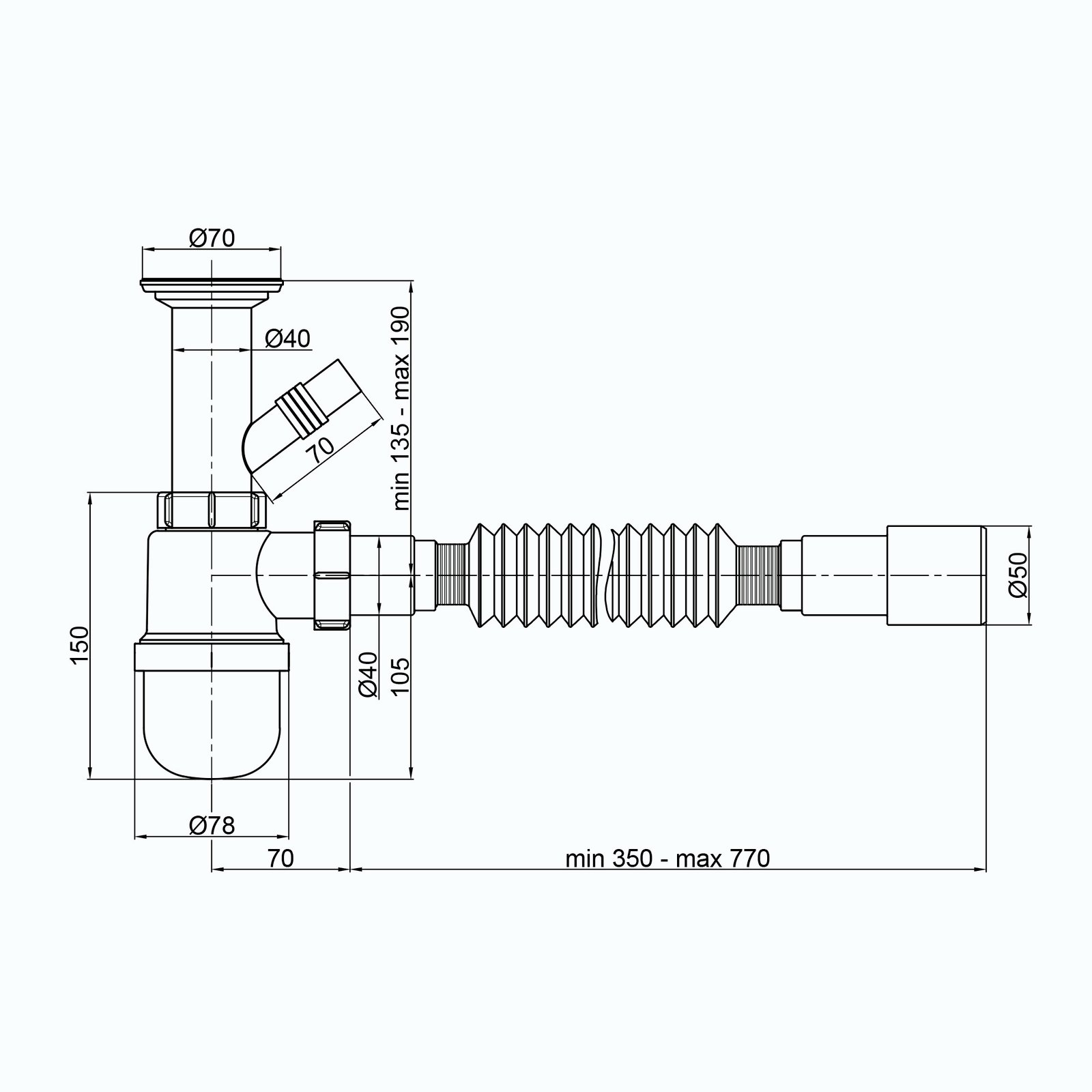 Сифон для умивальника Alcaplast A412-DN40
