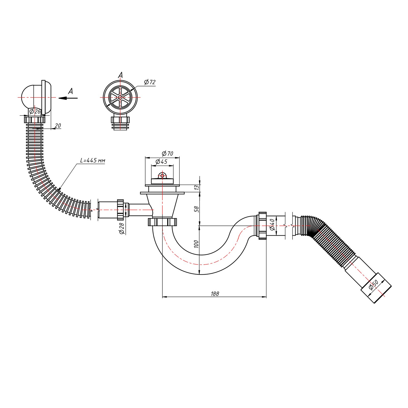 Сифон для ванни з переливом Lidz LW02 виготовлений із пластику білого кольору, має гладку внутрішню поверхню, завдяки чому зменшується накопичення бруду на стінках. Це дозволяє чистити сифон не так часто. У комплектацію входить зручна пробка, яка може перекривати зливний отвір. Наявність гофрованої труби дозволяє змінювати її довжину і кут під час установки.