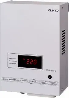 Автоматичний симісторний регулятор напруги АСН-350 C призначений для роботи з побутовими електроприладами з потужністю споживання до 350 Вт від мережі 220 В, 50 Гц забезпечує автоматичний контроль і регулювання напруги мережі, а також захист від зниженої і підвищеної напруги та високовольтних імпульсів. АСН-350 C призначений у першу чергу для покращеного захисту систем керування автономного опалення та іншої електроапаратури з асинхронними електродвигунами загальною потужністю споживання до 350 Вт (пусковою до 2500 Вт).