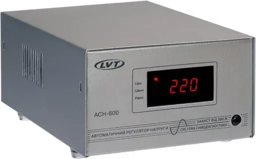 Автоматичний регулятор напруги АСН-600 призначений для роботи з побутовими електроприладами з потужністю споживання до 600 Вт від мережі 220 В, 50 Гц забезпечує автоматичний контроль і регулювання напруги мережі, а також захист від зниженої і підвищеної напруги та високовольтних імпульсів. АСН-600 призначений у першу чергу для захисту побутових холодильників, морозильних камер, систем керування автономного опалення та іншої електроапаратури з асинхронними електродвигунами загальною потужністю споживання до 600 Вт (пусковою до 4000 Вт).
