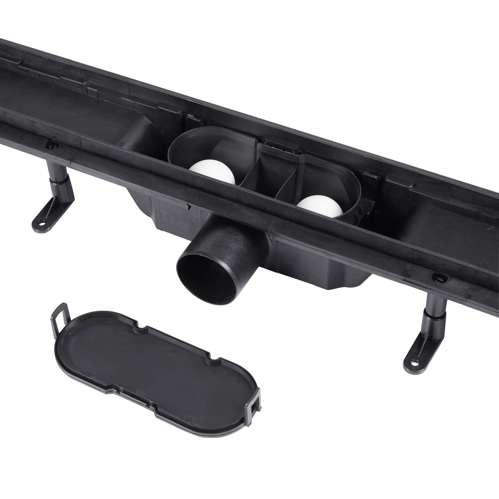 Лінійний трап Qtap Dry FF304-700MBLA дозволить створити душ мрії без бортів врівень з підлогою. Такий душ виглядає стильно та привабливо. Трап складається з горизонтального відводу води і прямокутної вузької накладки, яка затримує сміття. Вона виконана у вигляді пластини з подовженими овальними отворами на однаковій відстані один від одного. Пропускна спроможність такого трапа в рази вище, ніж у точкових, і вода не буде збиратися навіть при використанні сильного напору.