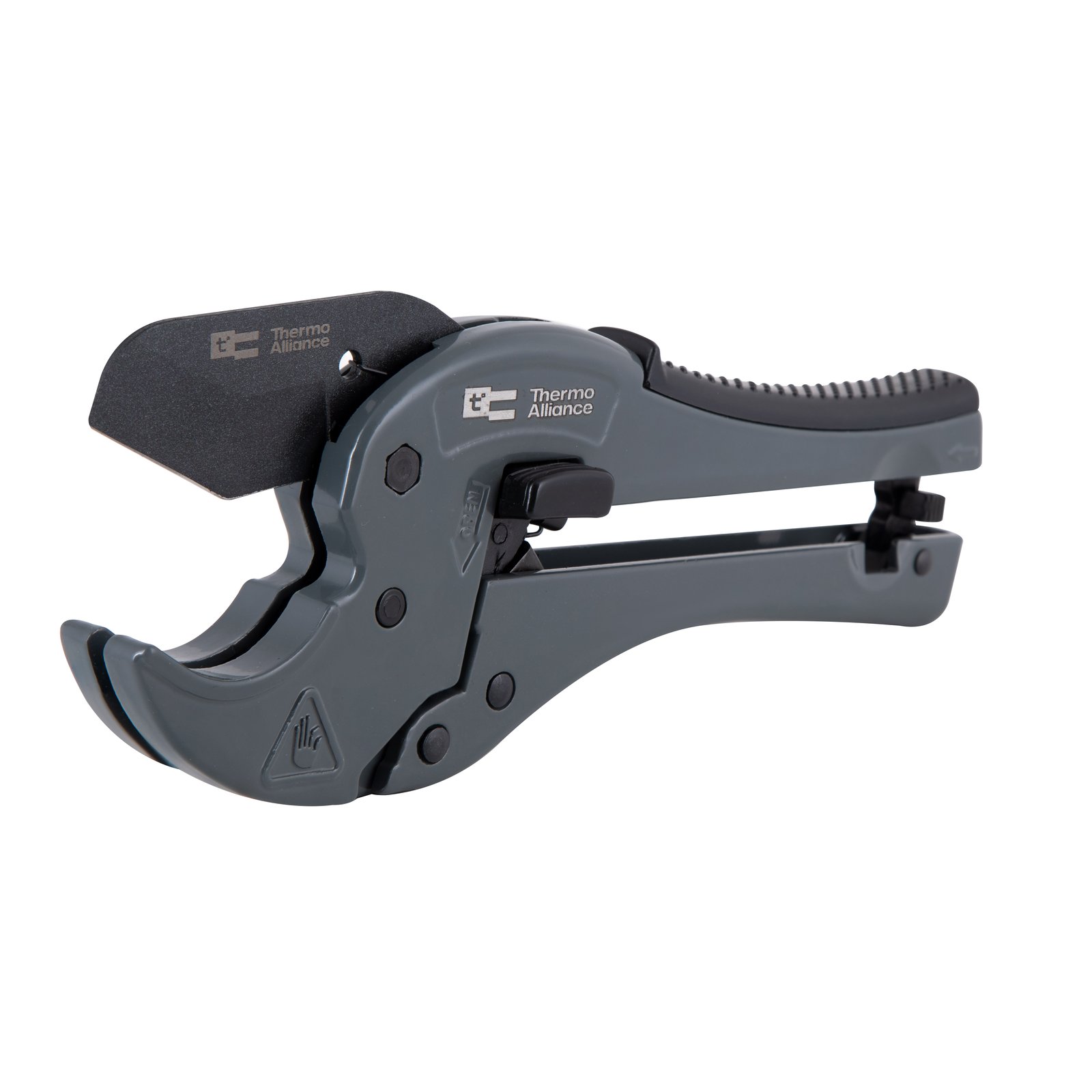 Ножиці для пластикових труб Thermo Alliance модель STD-002 створені для професіоналів і відповідають найвищим стандартам якості. Вони призначені для різання полімерних труб діаметром до 40 мм. Леза з нержавіючої сталі високої якості з тефлоновим покриттям забезпечують тривалу гостроту та ефективність різання. Храповий механізм дозволяє легко, точно і прямо різати труби однією рукою, докладаючи мінімальних зусиль. Корпус виконаний із легкого та міцного алюмінієвого сплаву. Зручна ручка з антиковзким покриттям. У комплекті є запасне лезо. Вага ножиць - 368 гр.