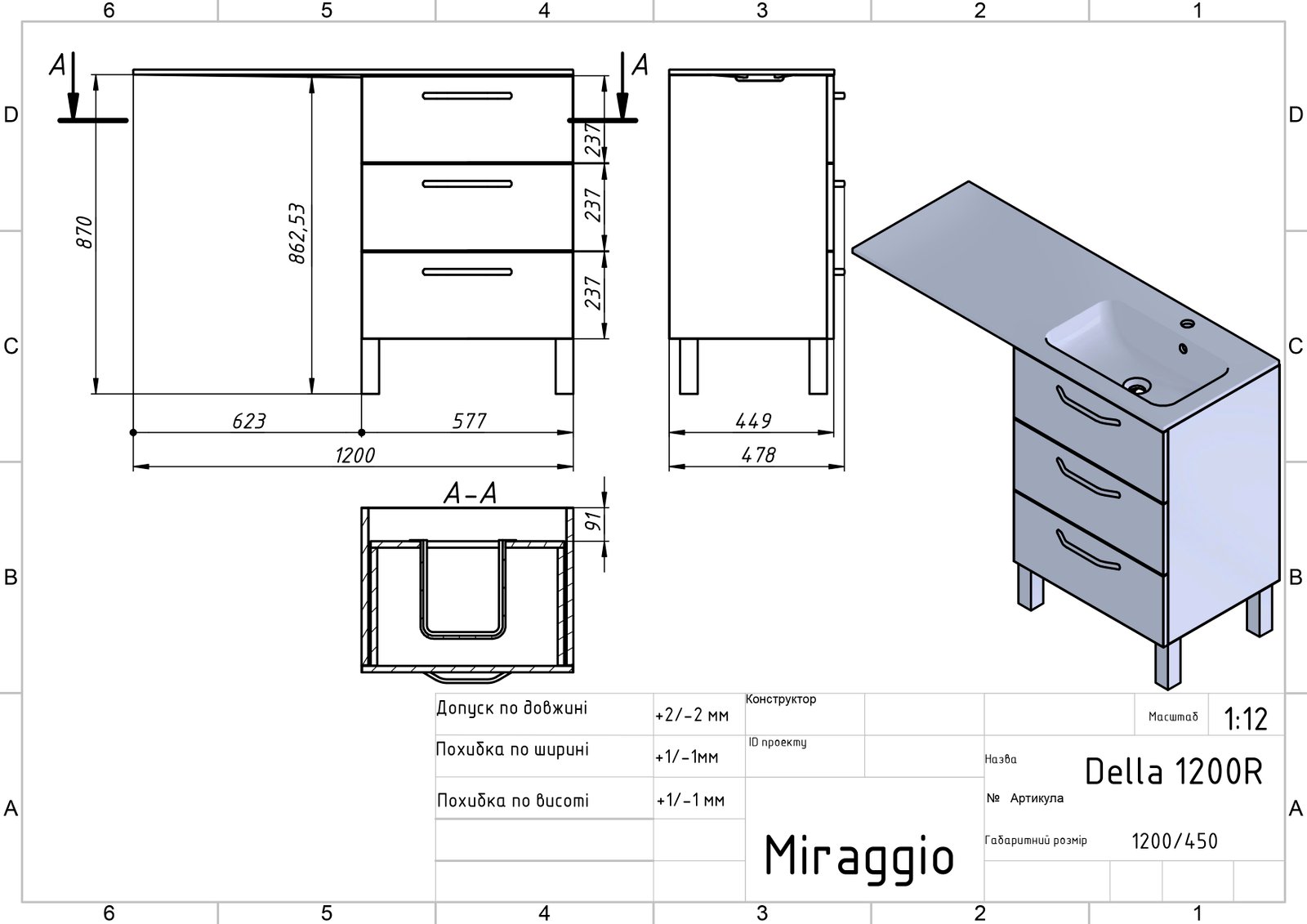 Тумба підлогова TESSA Зелена для умивальника DELLA 1200 R